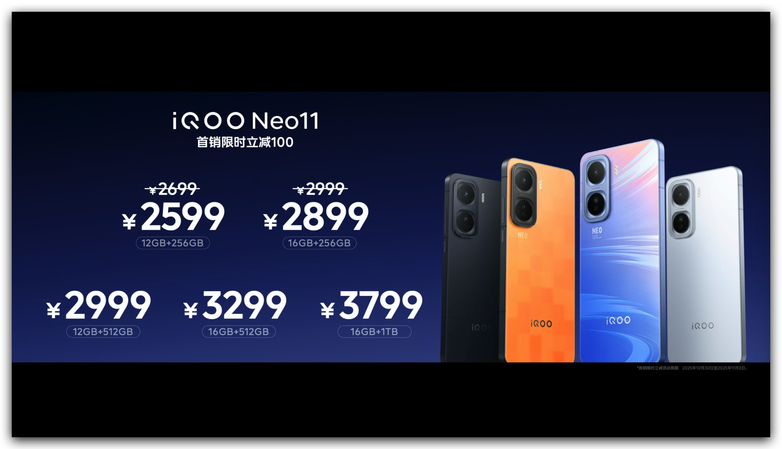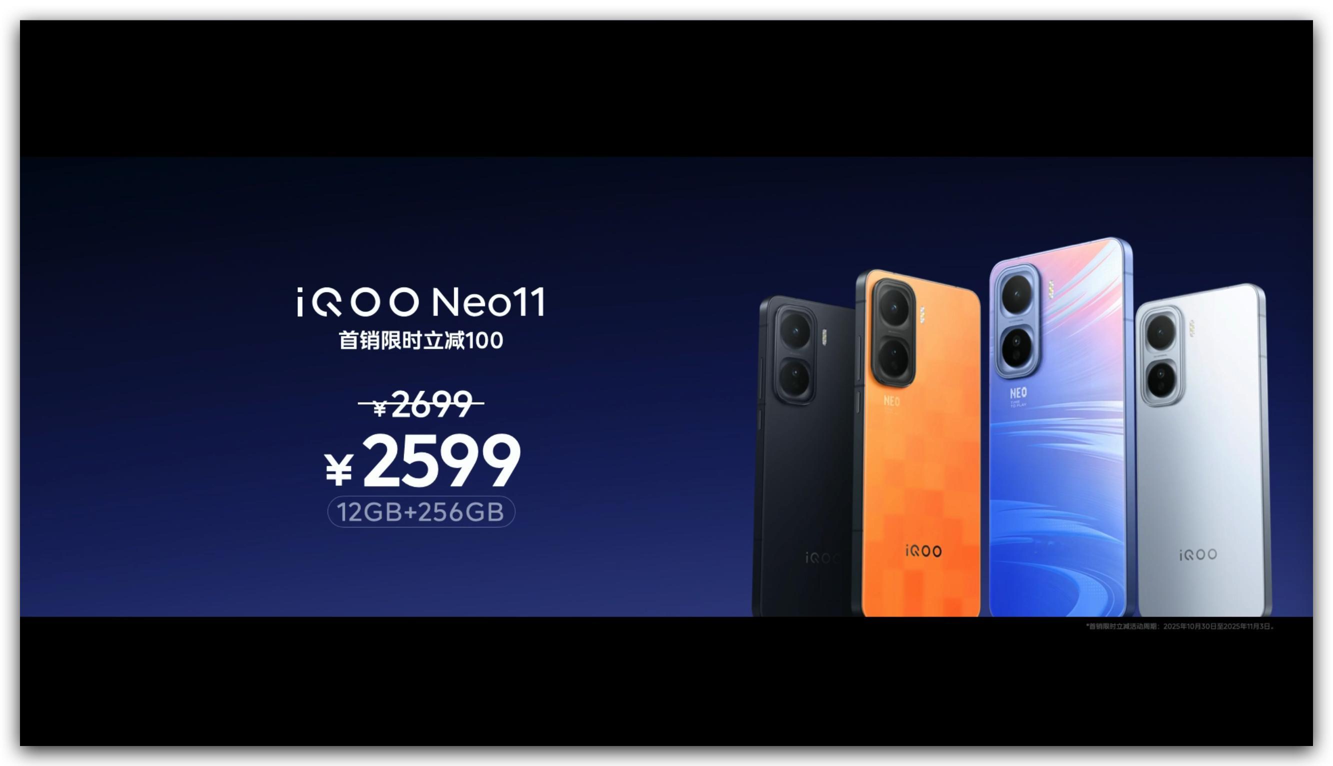 iQOO Neo11价格来啦:售价2599元起(首销)