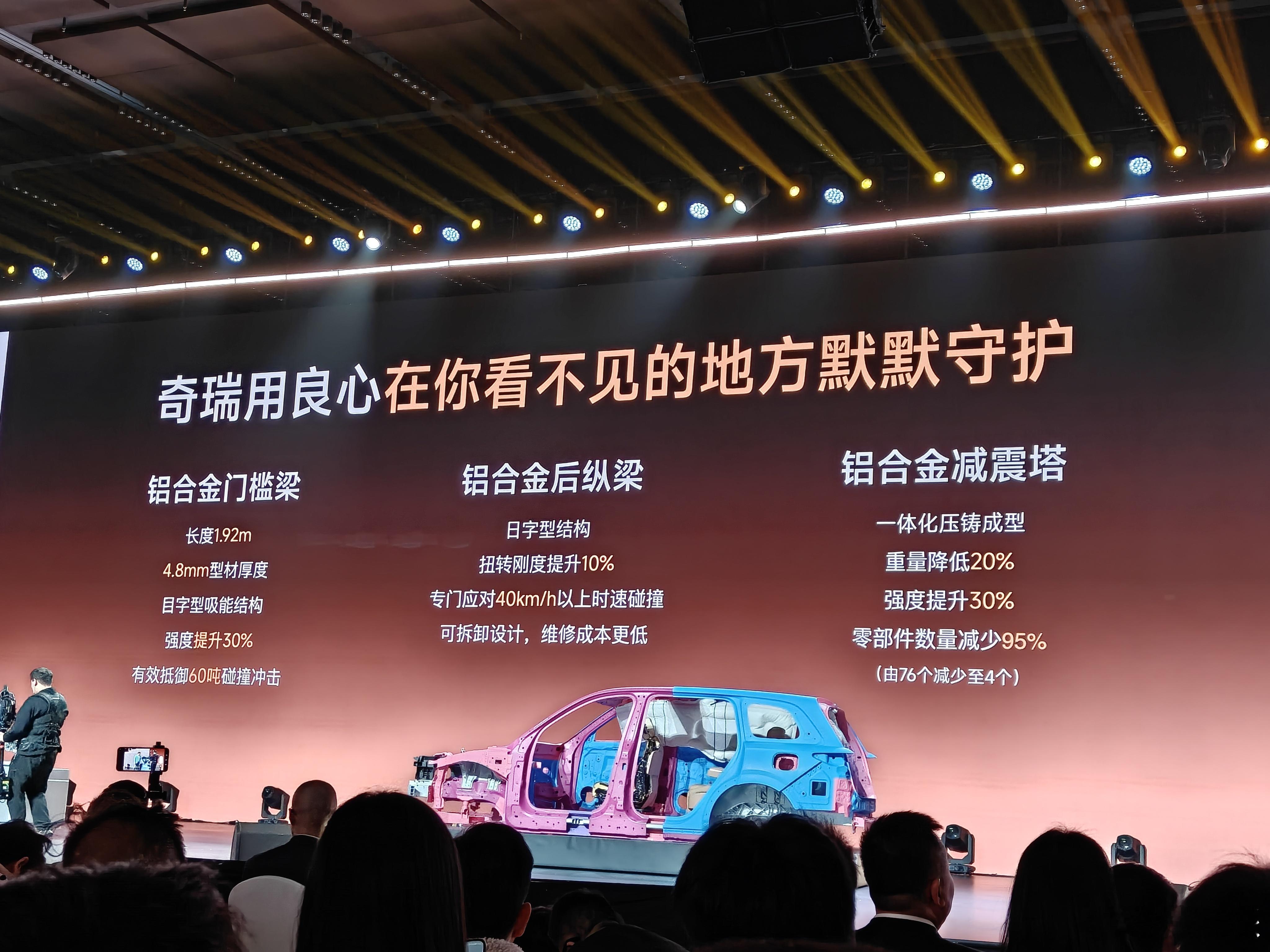 奇瑞风云 T11在安全方面,做了很大的努力。发布会现场讲了很多很多,甚至直接上了车架,现场拿到镜头下一点点讲解,从看得见的到看不见的,从外观到内饰,从硬件到软件,全方面安全,内容很多很硬核,多的不说大家看图就完[并不简单][并不简单] 风云T11上市让百万豪华触手可及