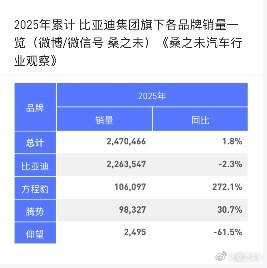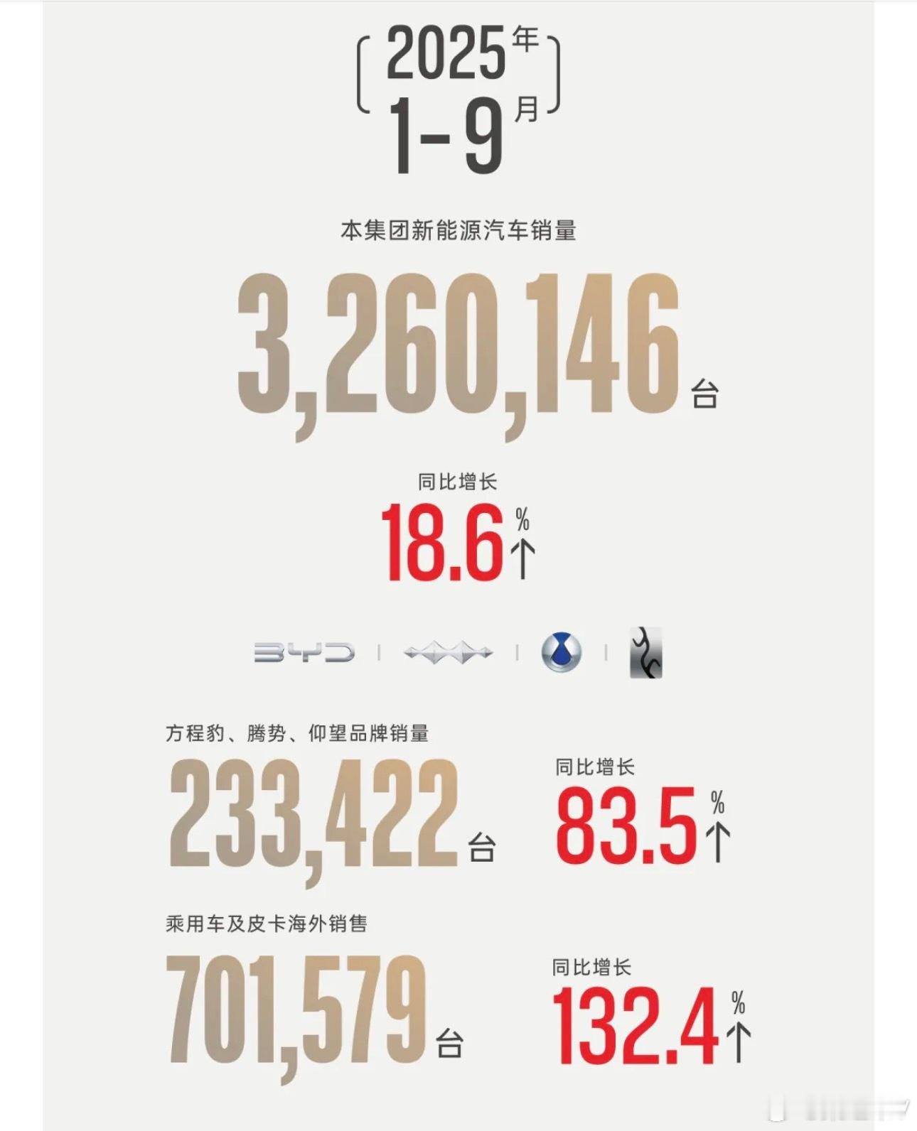 比亚迪2025年三季度财报,1-9月集团销售326万辆,同比增长18.6%;