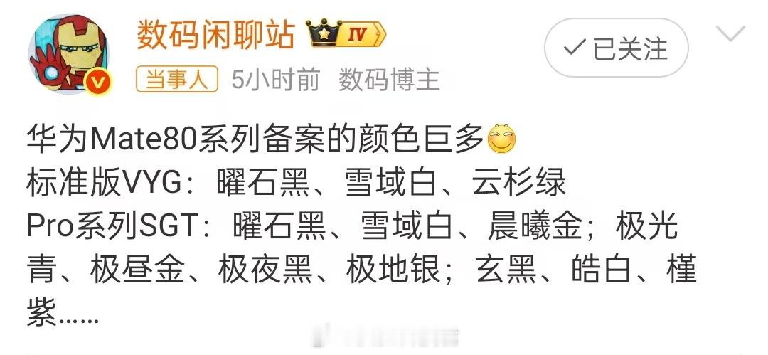 咱就说华为Mate80系列这波配色是把“调色盘”搬来了吧!看站哥爆料,颜色多到能戳中各种审美: