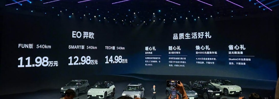 北京现代EO羿欧发布上市售价11.98万元-14.98万元起续航540公里韩系纯