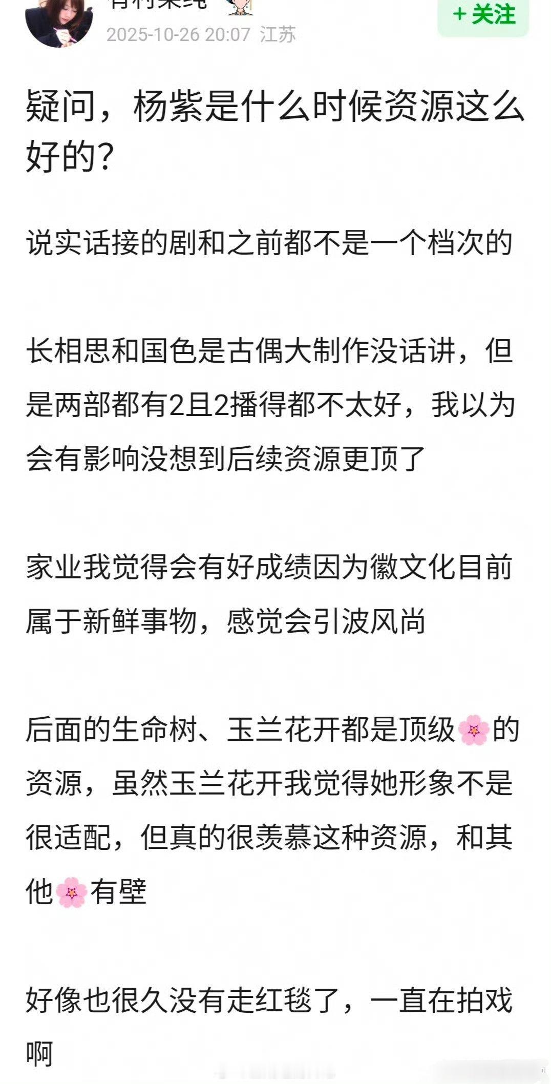 网友问 🍇杨紫是什么时候资源这么好的?