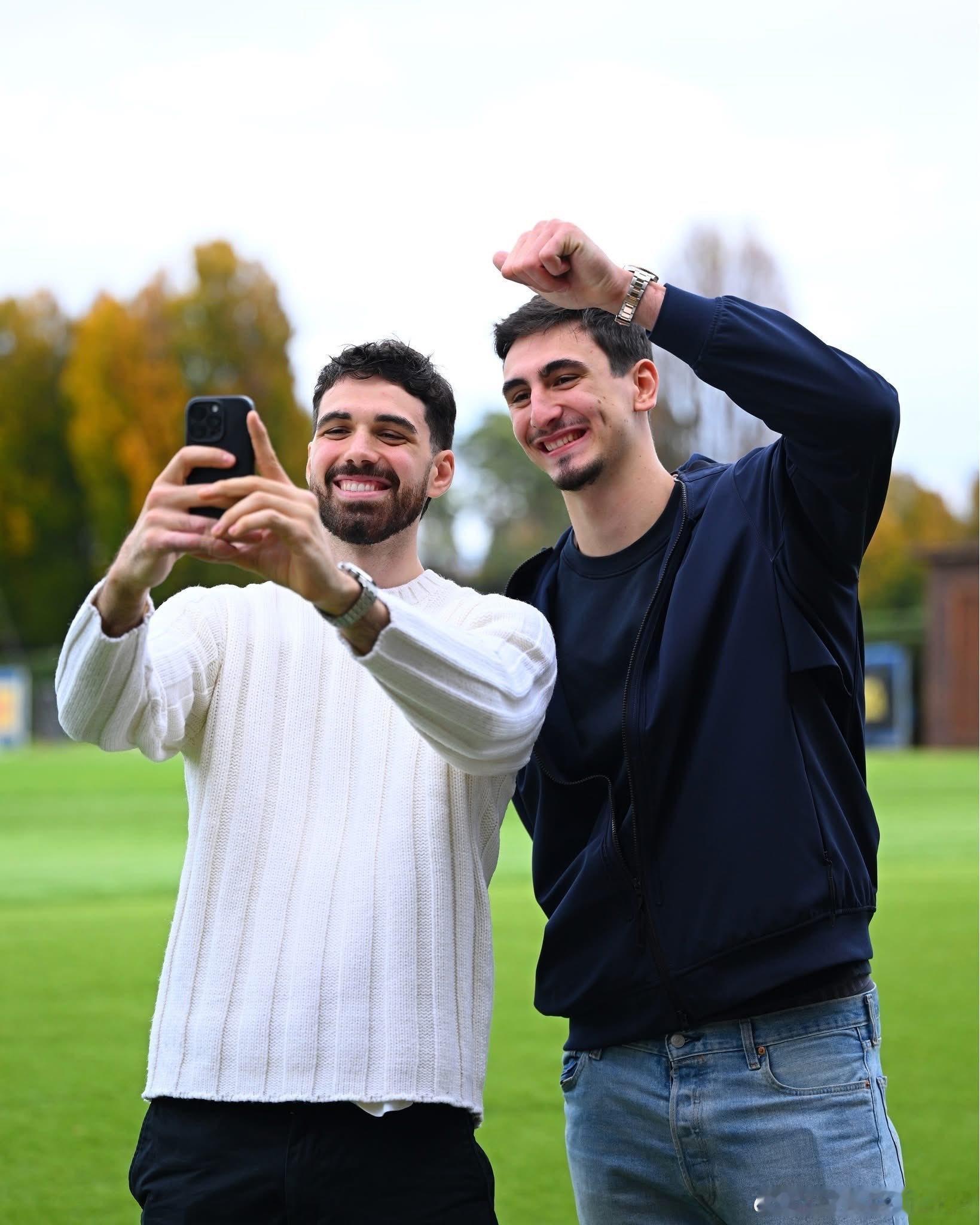 📷 拉维亚和米歇莱托的日常装——他们共同参观了AC国际米兰足球队。