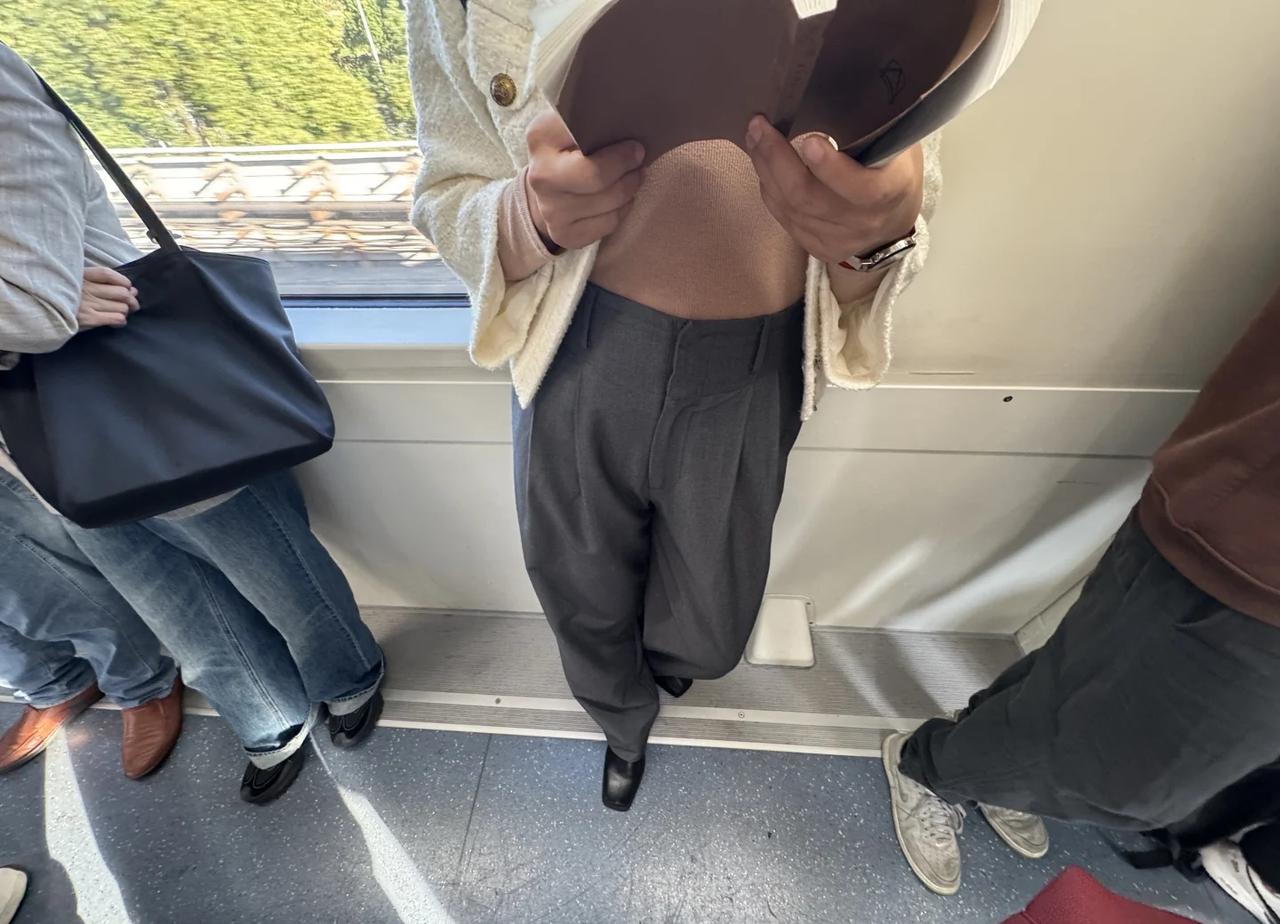 地铁9号线拆座位后实际效果 常乘9号线的朋友都知道,一般正常情况9号线的座位能坐6个成年人,今天佘山上车 正巧上了一辆被拆座位的车,上车后靠窗一排站着4个人,由于我的单肩包很重,上车后我试图站到靠窗两人的中间,想着大家“平擦擦”可以容我站那放个包,由于经过白衣女士还轻生想她打了声“不好意思”招呼,然而我站那一顿倒腾我包里的东西,和再次尝试要站定她俩中间后,两人依然没有挪过一步,想着还是不要影响别人,我又自觉地站到了对面的拉环位置站着。当然后面站上来了还是有人硬要站在那个位置,也站了,但是这俩女士也没有任何“平擦擦”的动作,依旧“固守”一方天地。然而我一路乘到马当路,这原本一排坐6人的区域全程只站了5个人。 即使大家都愿意互相谦让的情况下站蛮6人,也没有多余的空地在两排面对面站立的空间里加插一排站人,所以拆座位提高运能到底是哪里来的灵感?来灵感和决定拆的到底有没有乘过9号线?地铁 上下班地铁上日常