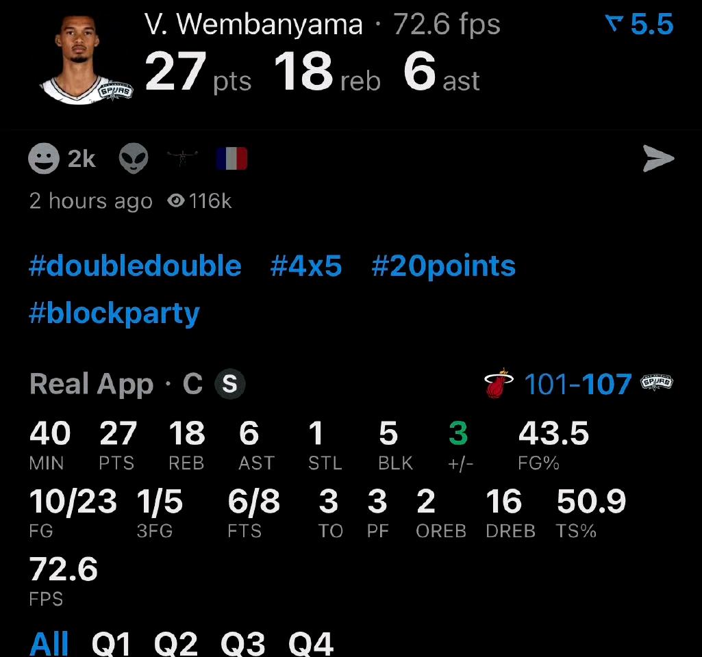 今天文班亚马数据也非常牛逼,这是我心中的联盟第一人潜力巨星。 基本上NBA要捧他当牌面。 因为现在最牛球星亚历山大是加拿大人,那个地方市场小,商业潜力不够。 文班亚马是法国人,欧洲市场更大。 所以联盟捧文班亚马最适合![大金牙]