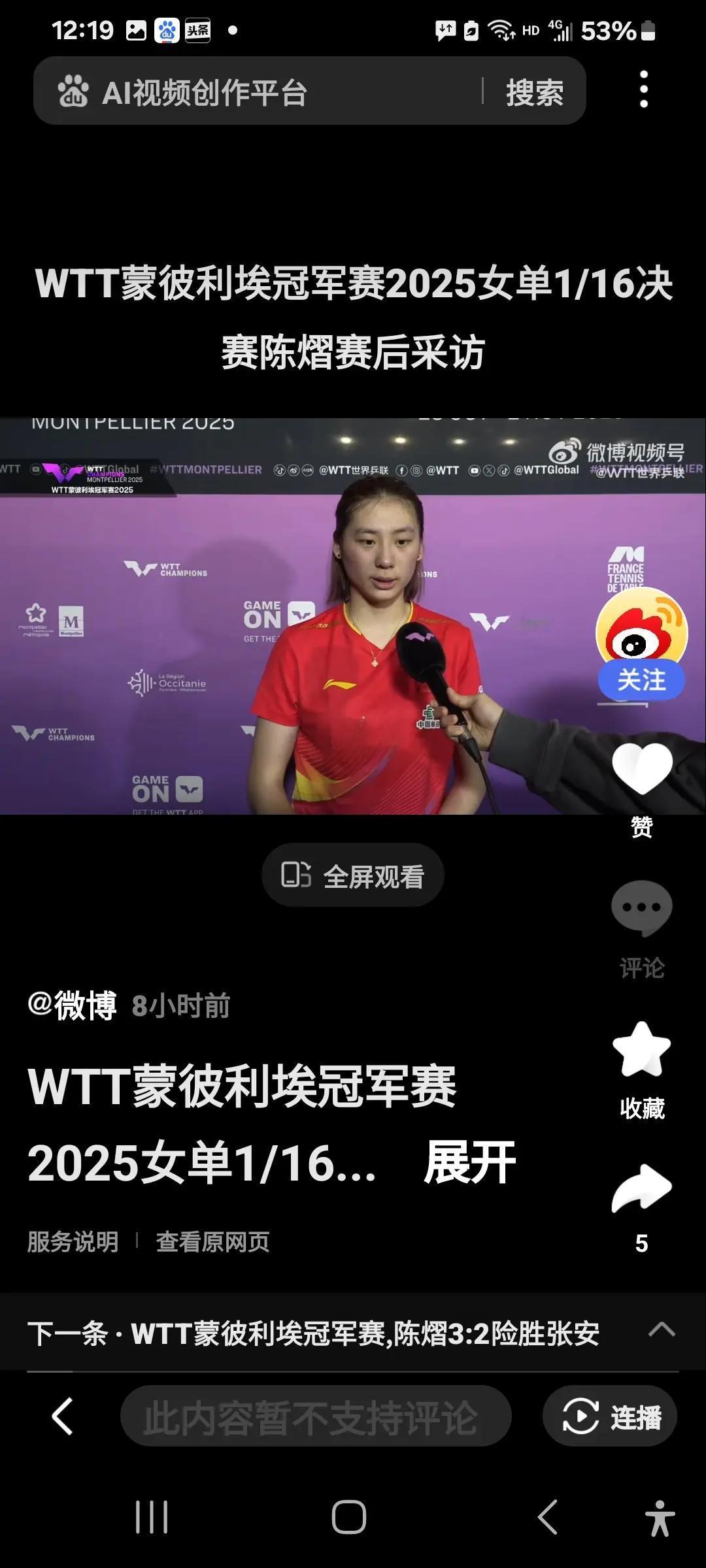 刚刚刷到一篇小作文说,陈熠在没有现场球迷的干扰下,心态超稳,而且现场也没有几个球迷看球,很安静,所以陈熠赢了张安,晋级第二轮比赛。 可是我们听了陈熠赛后的采访,她说对阵张安时,有些紧张,被打得有些慌。 我们该听谁的呢?[捂脸][捂脸][捂脸]