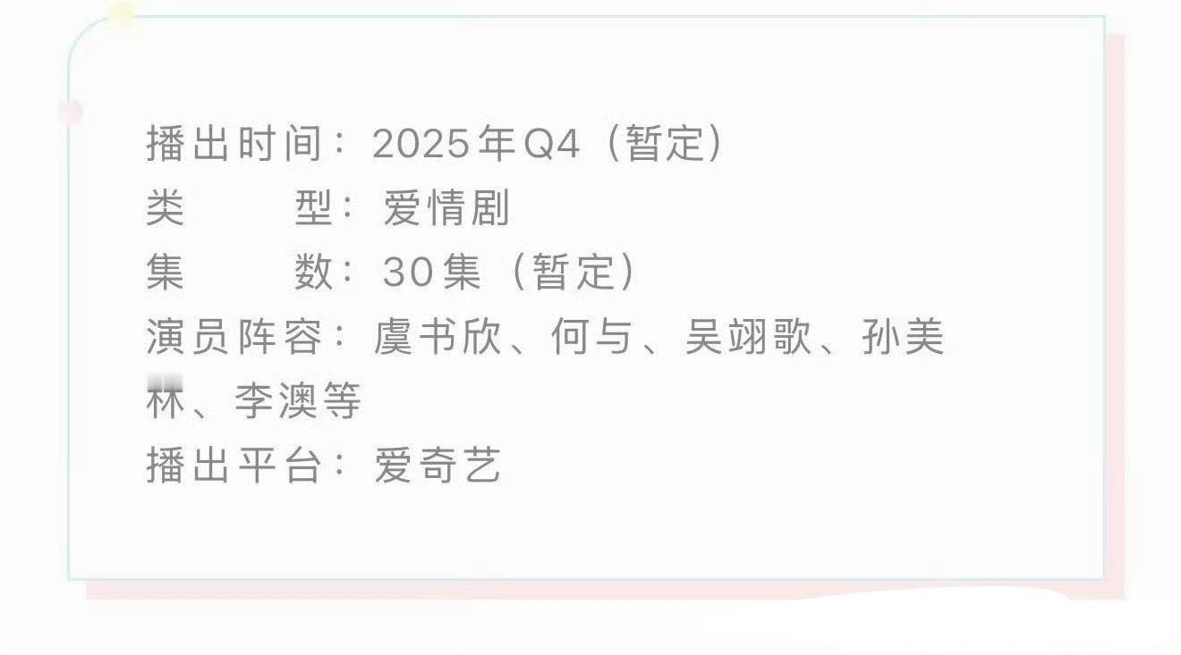 虞书欣《双轨》招商,预计Q4播出