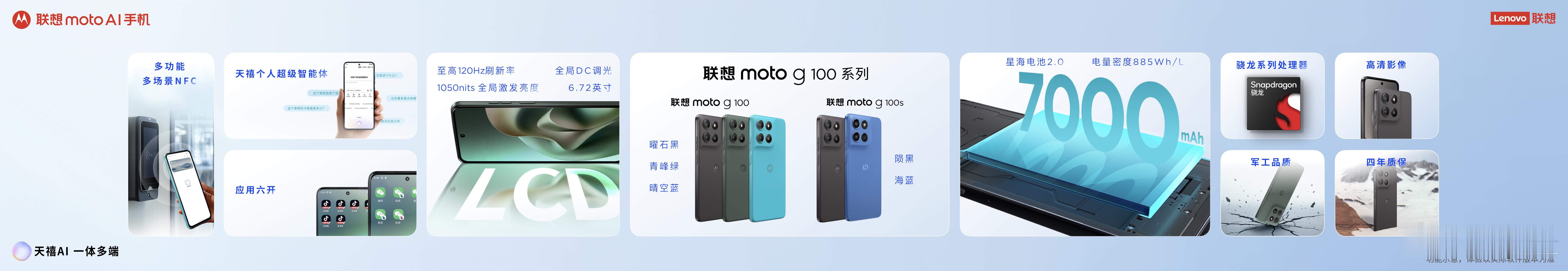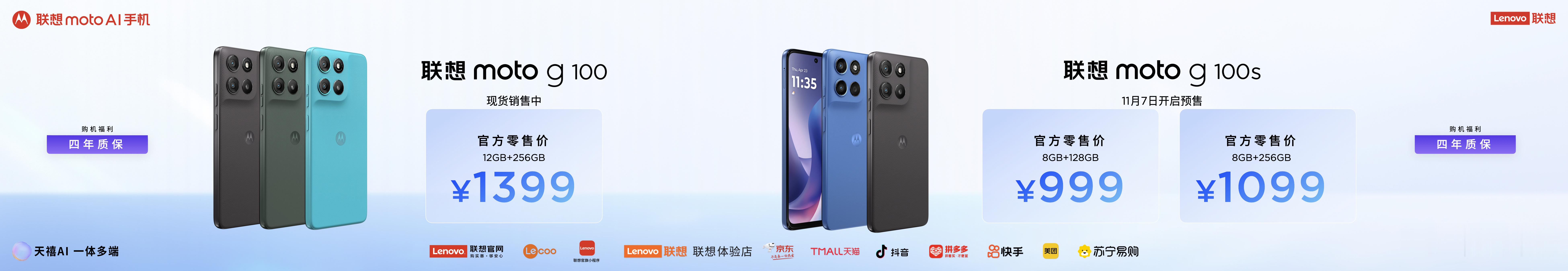 另外,联想还带来了联想moto g100,售价1399 元;联想moto g100s,售价 999 元起;联想 AI 眼睛 M1 和 M1 Pro 售价998 元、1098 元。