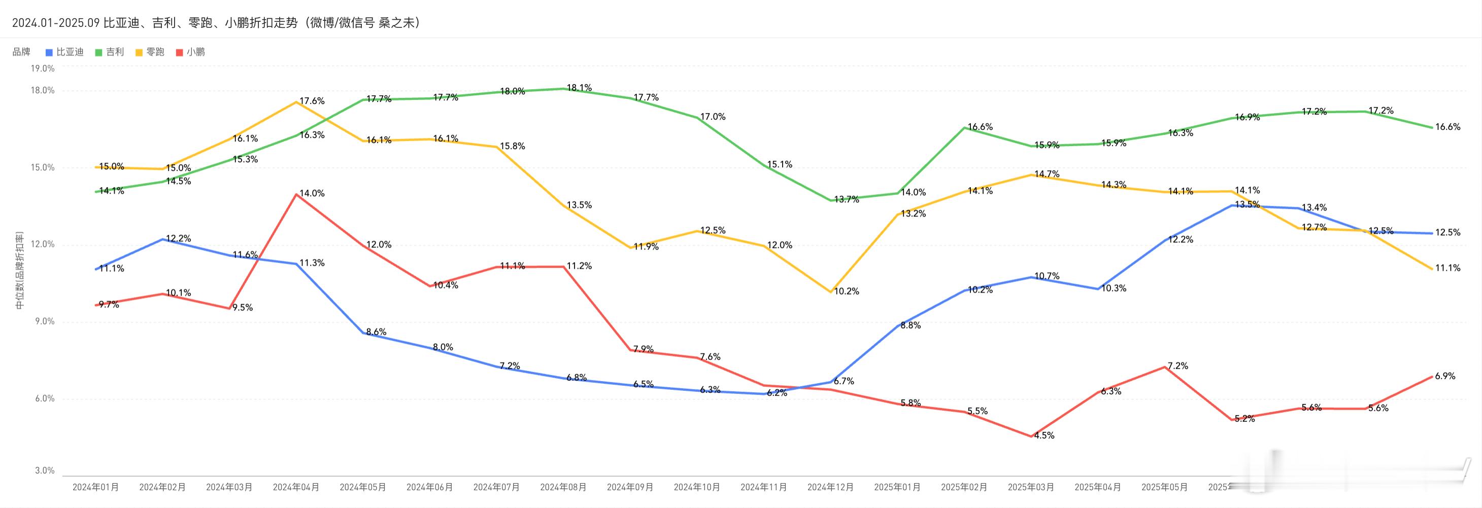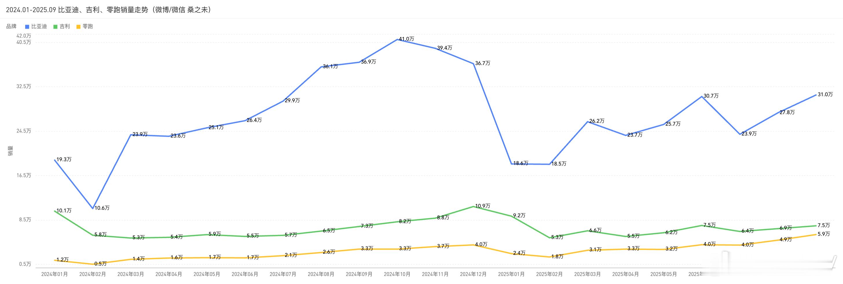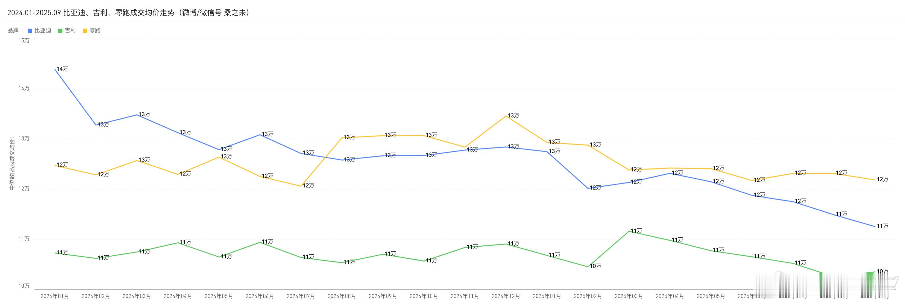 比亚迪、吉利、零跑 成交均价、折扣率、销量对比图