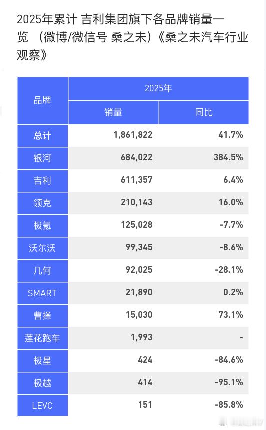 1-6月,吉利品牌销售61万辆,同比增6.4%。
