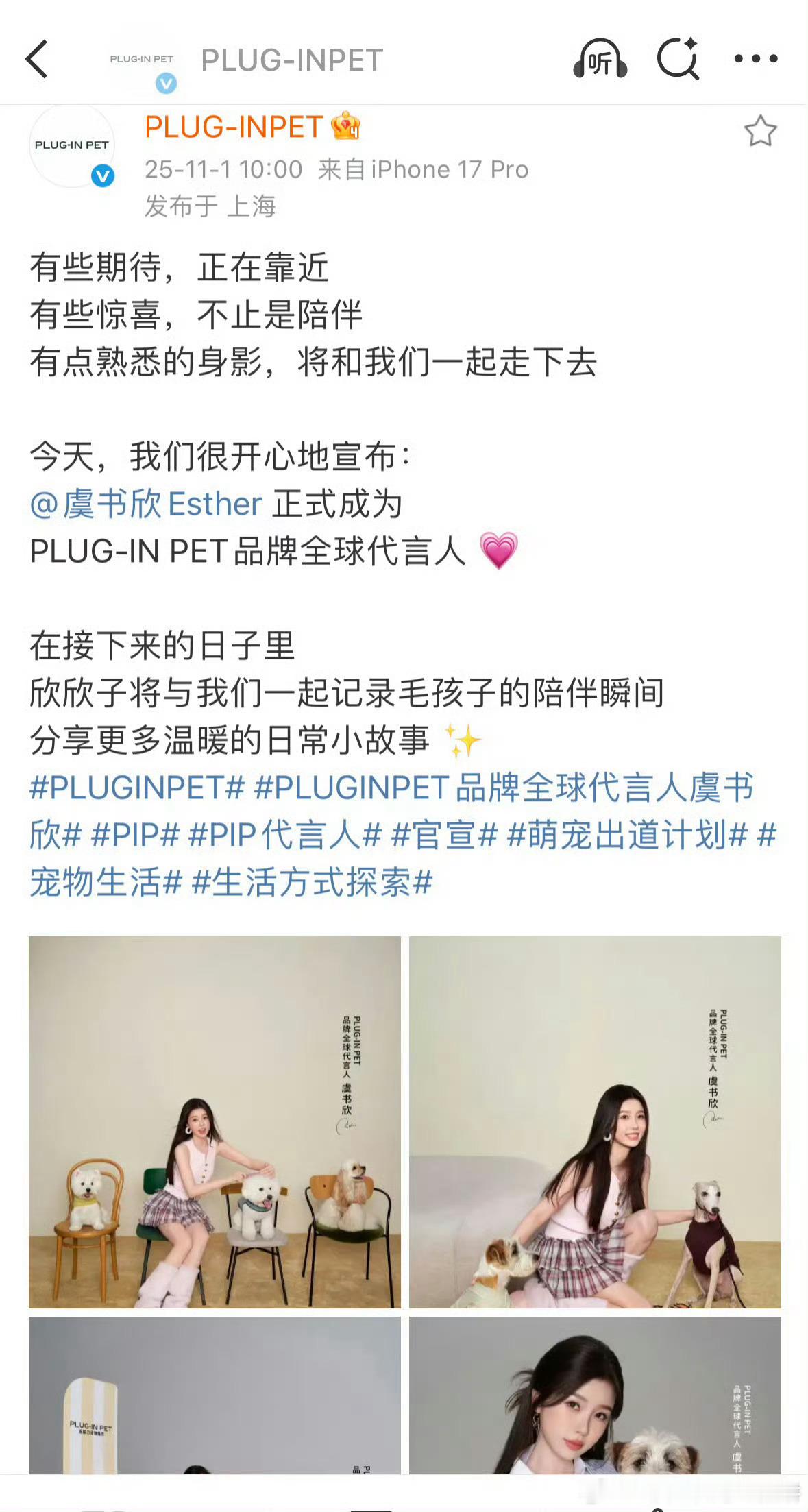 虞书欣宣了新的商务