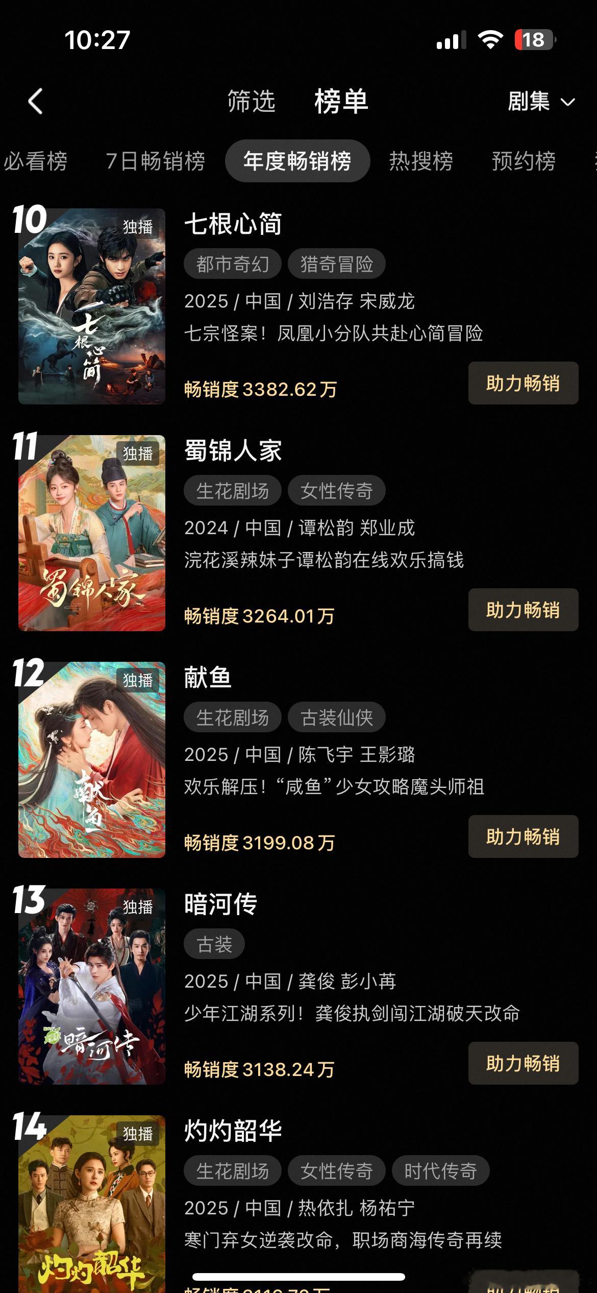 龚俊暗河传 7日畅销榜(拉新周榜)峰值4176w;周榜年4