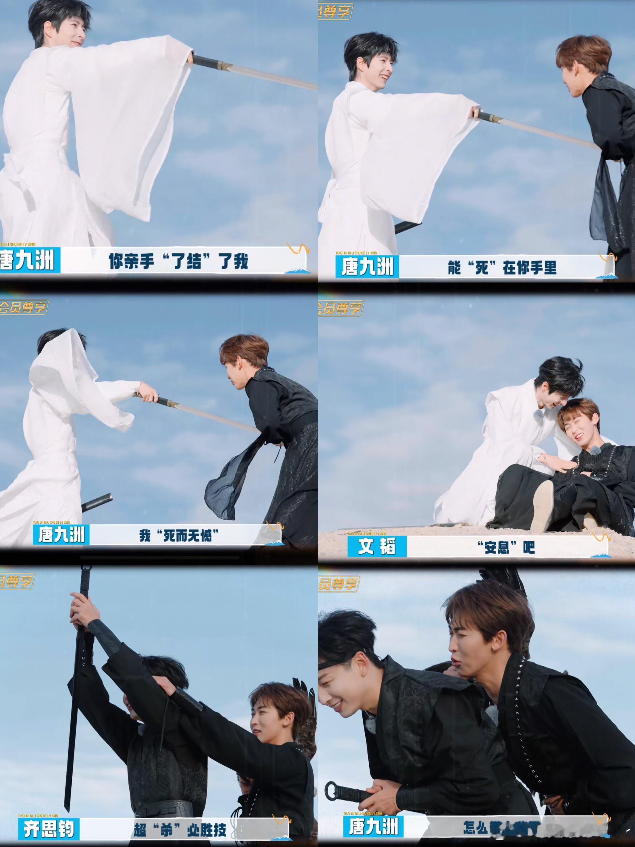 五个人组团去拍电视剧吧 哥哥们也是很宠九洲 各种情节来一遍 什么死在你的手里无憾啊…什么一箭双雕啊 笑的我眼泪都出来了哈哈哈哈哈哈哈