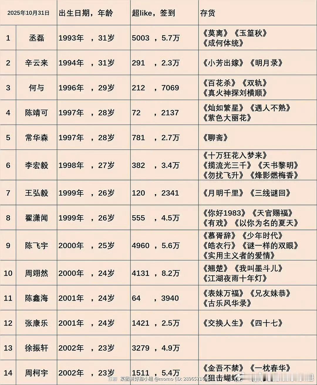 丞磊,常华森,张康乐,辛云来,王弘毅,陈鑫海,何与,陈飞宇,徐振轩,陈靖可,周翊然,周柯宇