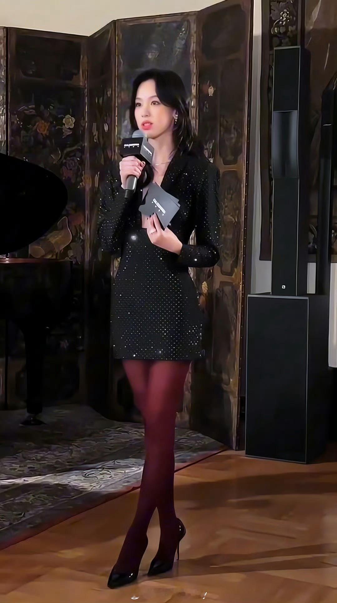 陈都灵今日线下活动、酒红裤袜造型[羞嗒嗒]