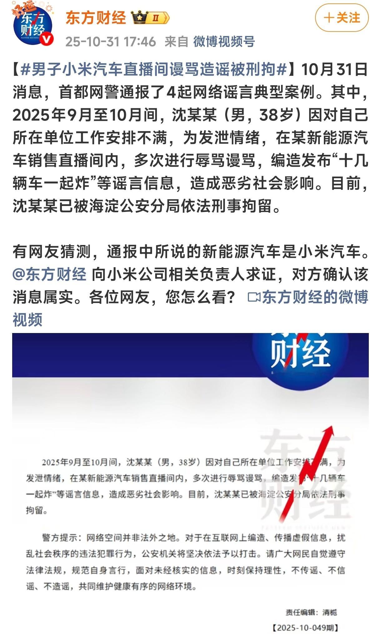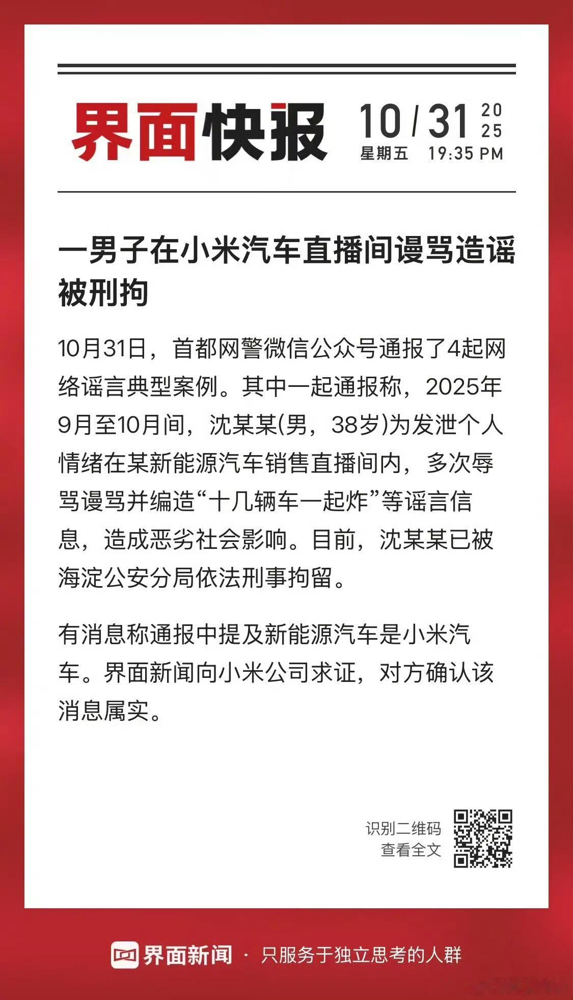 喜大普奔,这个案件很典型男子小米汽车直播间谩骂造谣被刑拘 也可以窥见那些在网上肆无忌惮谩骂品牌的人的画像。