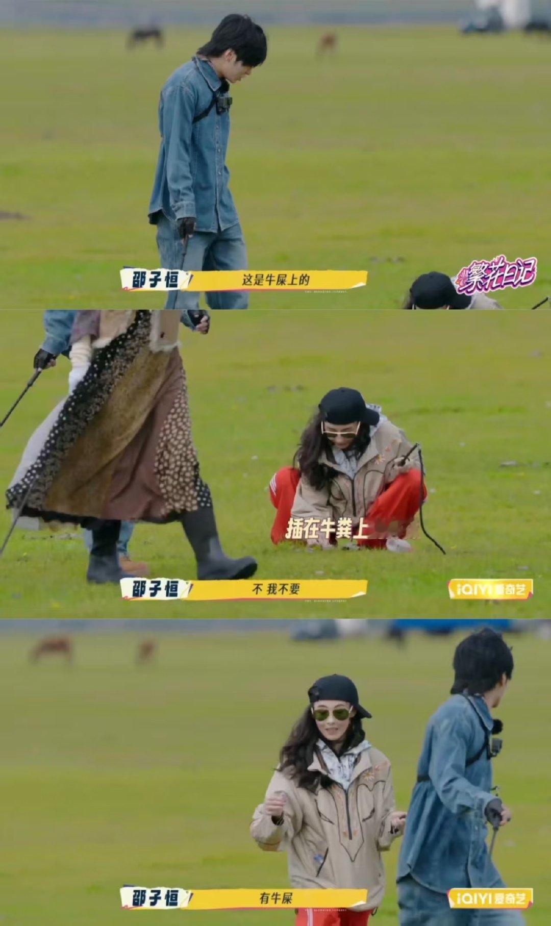 张柏芝在牛屎上摘花给邵子恒繁华的气氛好好,还得是熟人之间才这么有梗[旺柴]