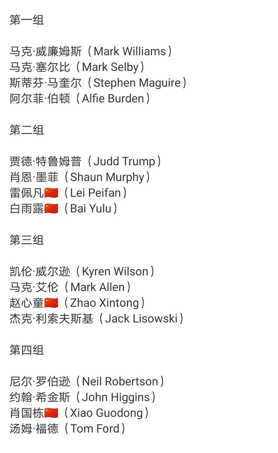 2025斯诺克冠中冠分组已确定,最轻松的莫过于马威和特鲁姆普:马威对阵老年冠军、小特对阵女子冠军。 大家预测一下八强和四强,我先来。 马威-塞尔比(马威晋级) 希金斯-尼尔罗伯逊(萝卜晋级) 凯伦威尔逊-马克艾伦(囧哥晋级) 墨菲-特鲁姆普(墨菲晋级)
