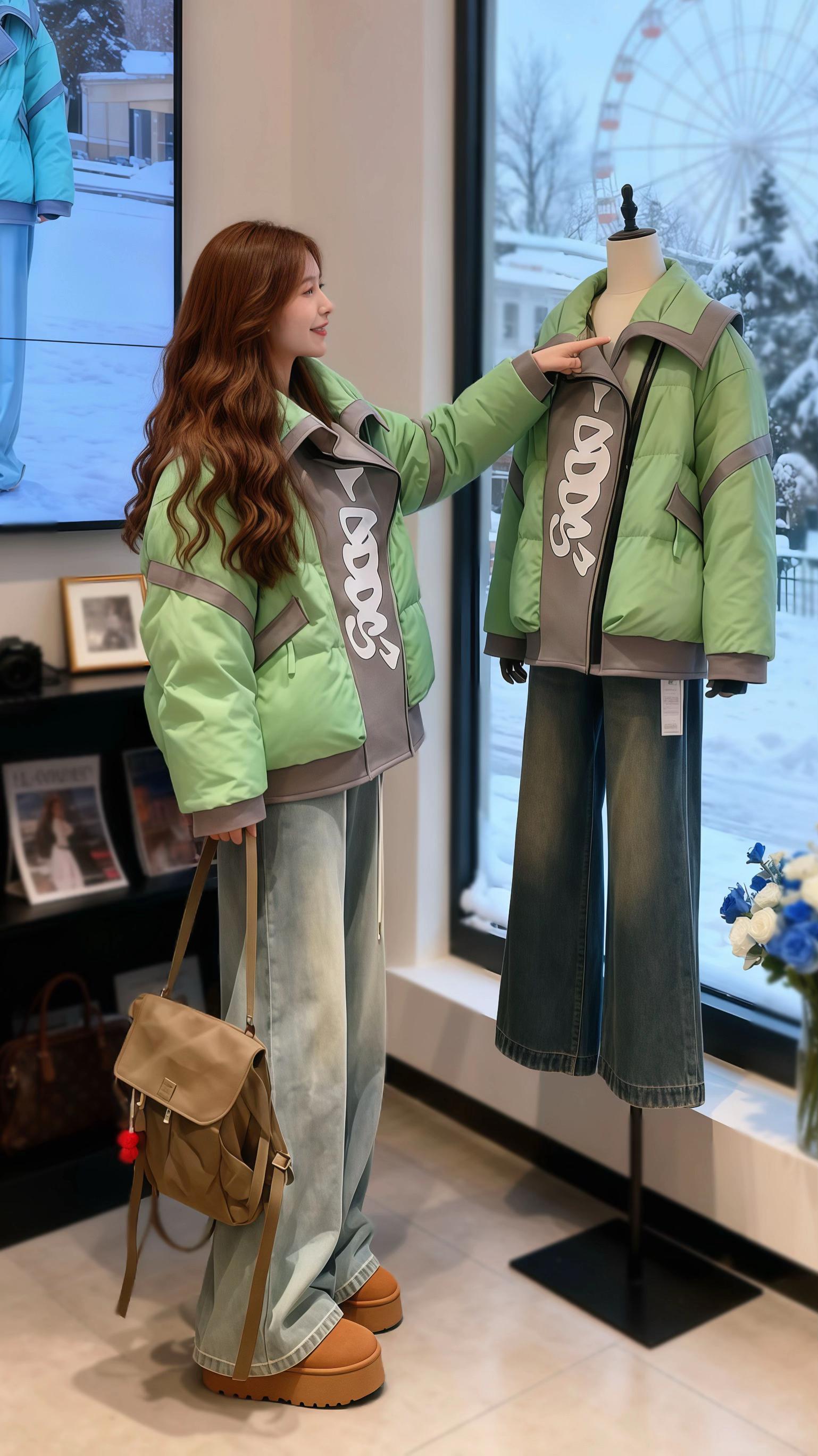 深秋的时尚买手店,林溪的目光被那件薄荷绿拼接羽绒服牢牢锁住。“这设计,绝了!”她指尖划过衣料,仿佛触到了潮流的脉搏。
