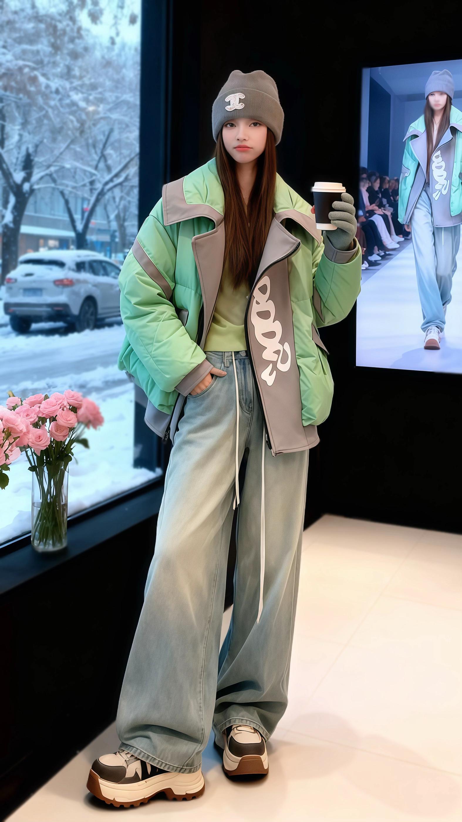 雪天里,她踩着厚底鞋出街,咖啡杯在手套里漾着暖意。橱窗倒影里,那抹薄荷绿成了街头最吸睛的存在,路过的时尚博主忍不住举起了相机。