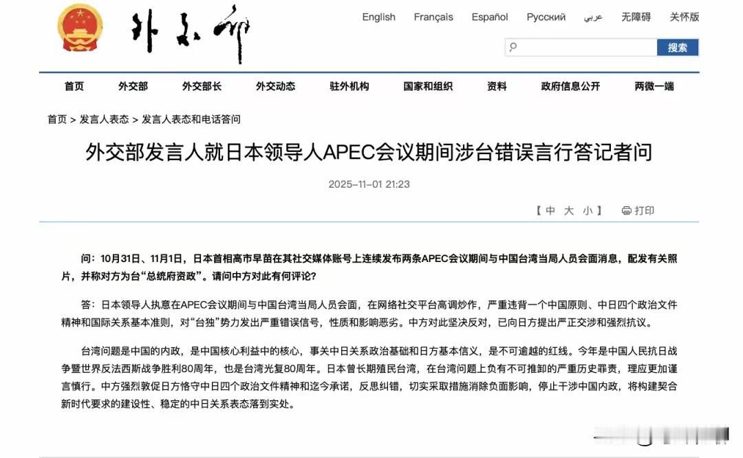 这高市早苗还真是胆大妄为,刚当上首相没几天,就不知道自己姓啥了。在这两天韩国APEC峰会期间,日本首相高市早苗在其社交媒体账号上连续发布了两条有关APEC会议期间与中国台湾当局人员会面的消息,还配发有相关照片,并称对方为台所谓“总统府资政”。 这是啥意思,当我们不存在?我们人还在韩国就敢这么嚣张?还称呼对方为所谓“总统府资政”,这么健忘吗?不知道台湾是中国一个省?省里哪有什么“总统府”。 既然日本这么健忘,那咱们也没必要给它留面子,我们不仅要强烈抗议,还要拿出实际行动,让日本也长长记性!(图片来自网络)高士早苗 日本新左翼 高木早苗 早苗幸子 高七早苗 高世早苗 日本早亡