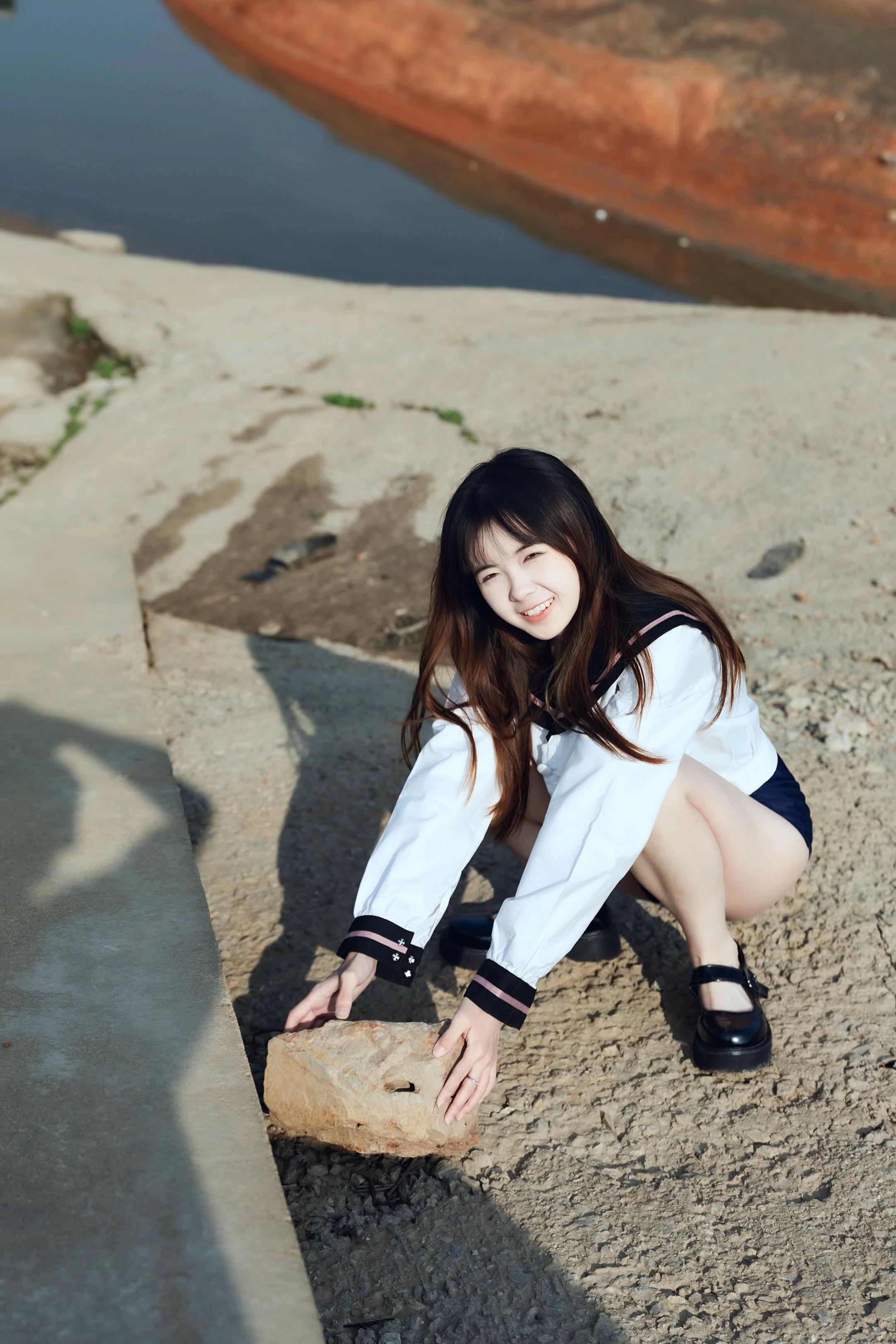 日系少女的湖边午后时光。《户外少女小清新写真》