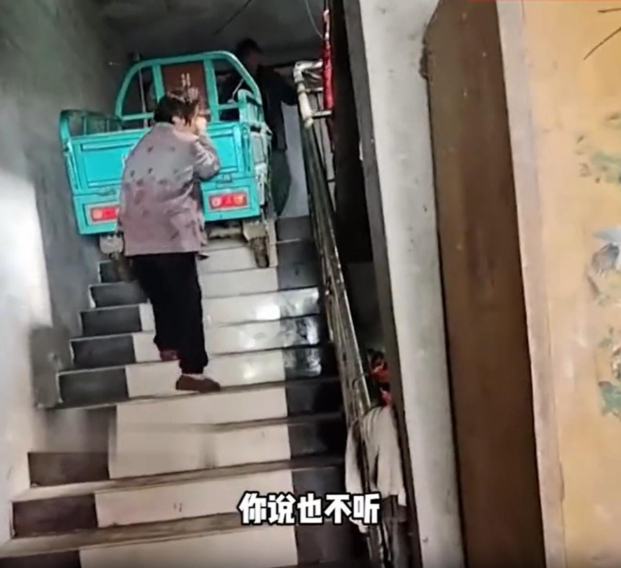 “有的老人是真固执!”安徽,两名老人想要把三轮车推上楼,但家里并没有电梯,于是想用直接的方法,用人力拉上去,女儿看的着急,一直在旁边劝阻,可两人根本不停,结果下一秒车子失控滑下楼梯,好好的台阶也是碎了一地 视频中,大爷站在台阶上,用绳子要把三轮车往上拉,大妈则站在三轮车的一侧帮忙往上推,可如此行为,就算是两个成年人都费力,更不要说是两名老人了 女儿在下面看着也是捏了一把汗,不停地劝阻,但两人根本听不进去,无奈之下,女儿只能提醒他们:说了你们也不听,这要是车掉下来,滚下来,车会砸到你们的! 而下一秒,她的话就应验了,三轮车突然向后滑动,绳子从大爷手中脱落,车子顺着楼梯一路翻滚而下,新修台阶也被磕碎 女儿赶紧上前查看,万幸的是两位老人及时躲开,没有受伤。她忍不住抱怨了几句,可父亲却固执地说:听不听现在也已经这样了 有网友说:这看着应该是自建房,反正是自己家楼梯,可问题是,把三轮车推上去有什么用,是怕被偷吗? 其实根子上就是一种“家里啥都得自己看着”的老观念。很多老人都觉得,车放楼下不放心,哪怕装了监控也不踏实。哪怕那辆三轮车不值几个钱,只要是自己常用的,就要看得见、摸得着,才安心 问题在于,时代变了,方式也该变。现在电动三轮、老年代步车多了,重量可不是几十斤的小推车,硬拉上楼不仅容易摔人,还可能把房子搞坏。安全隐患比丢车还要大