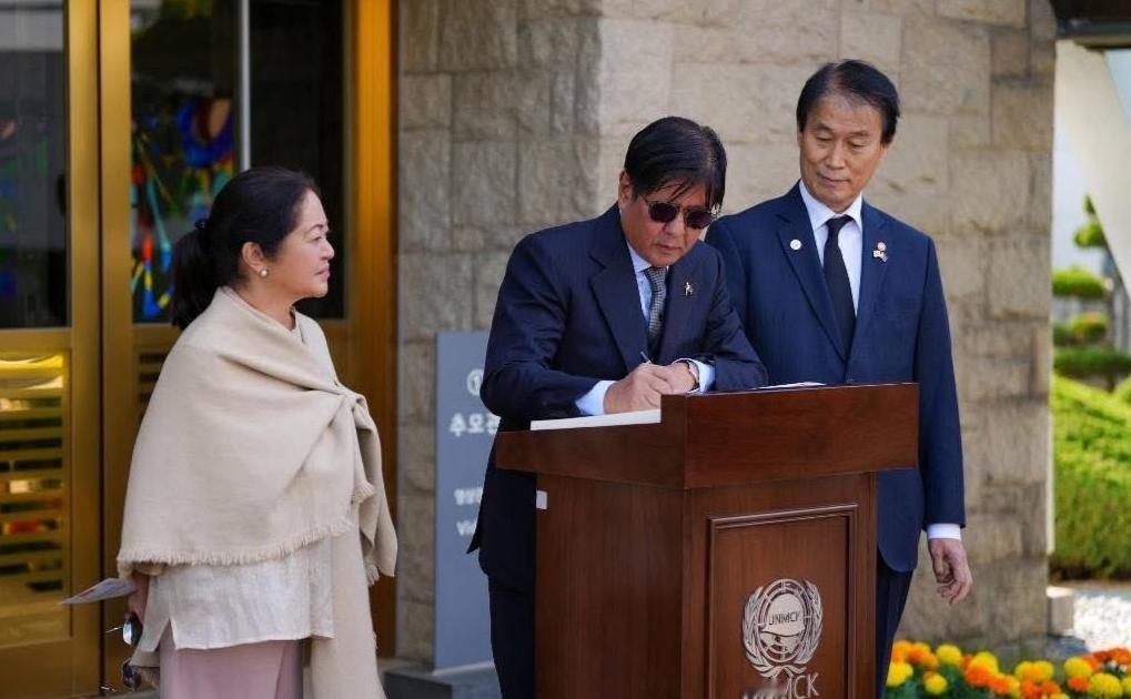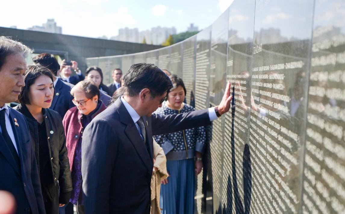 当地时间11月2日,菲律宾总统小马科斯在韩国釜山,所谓“联合国军纪念公墓”访问期