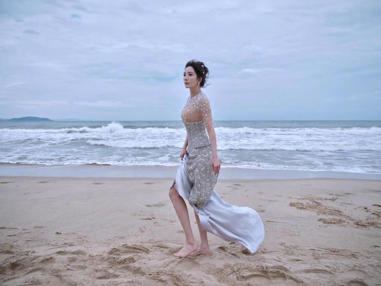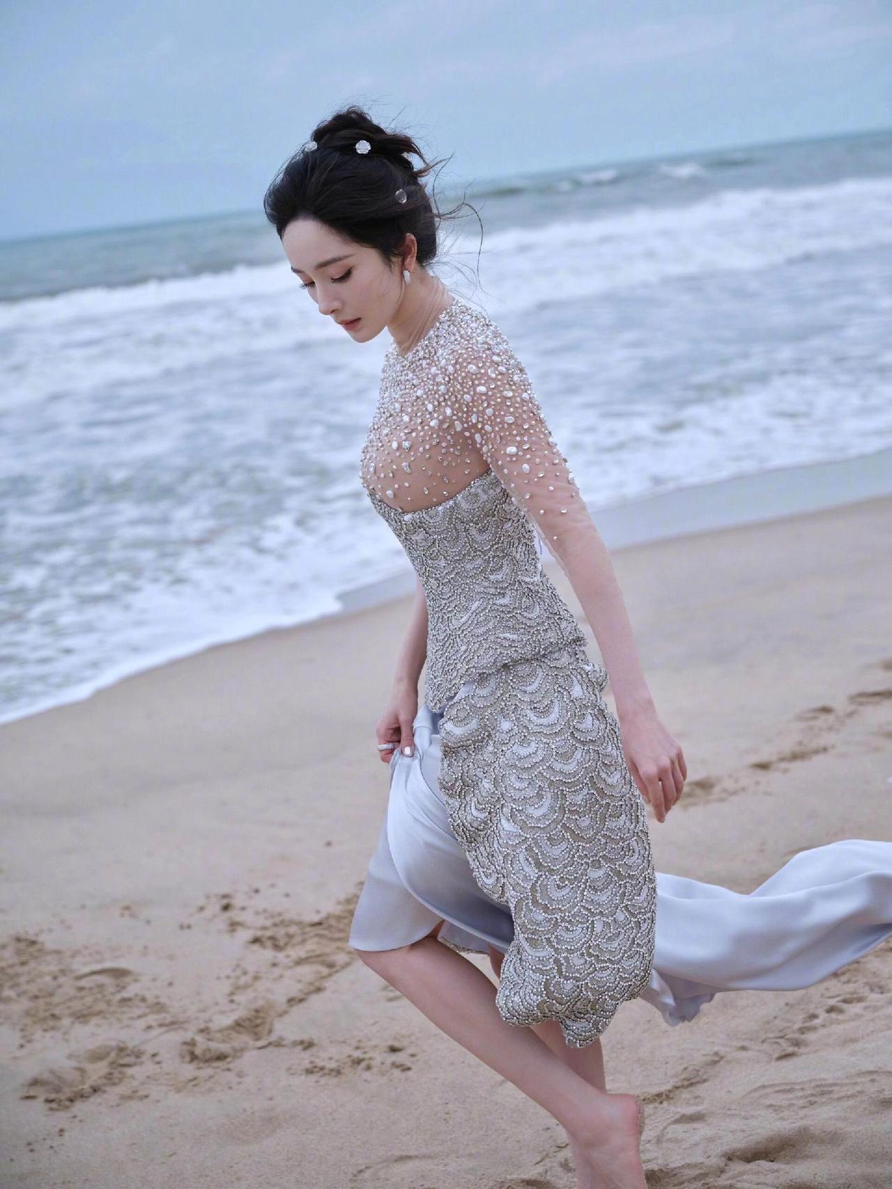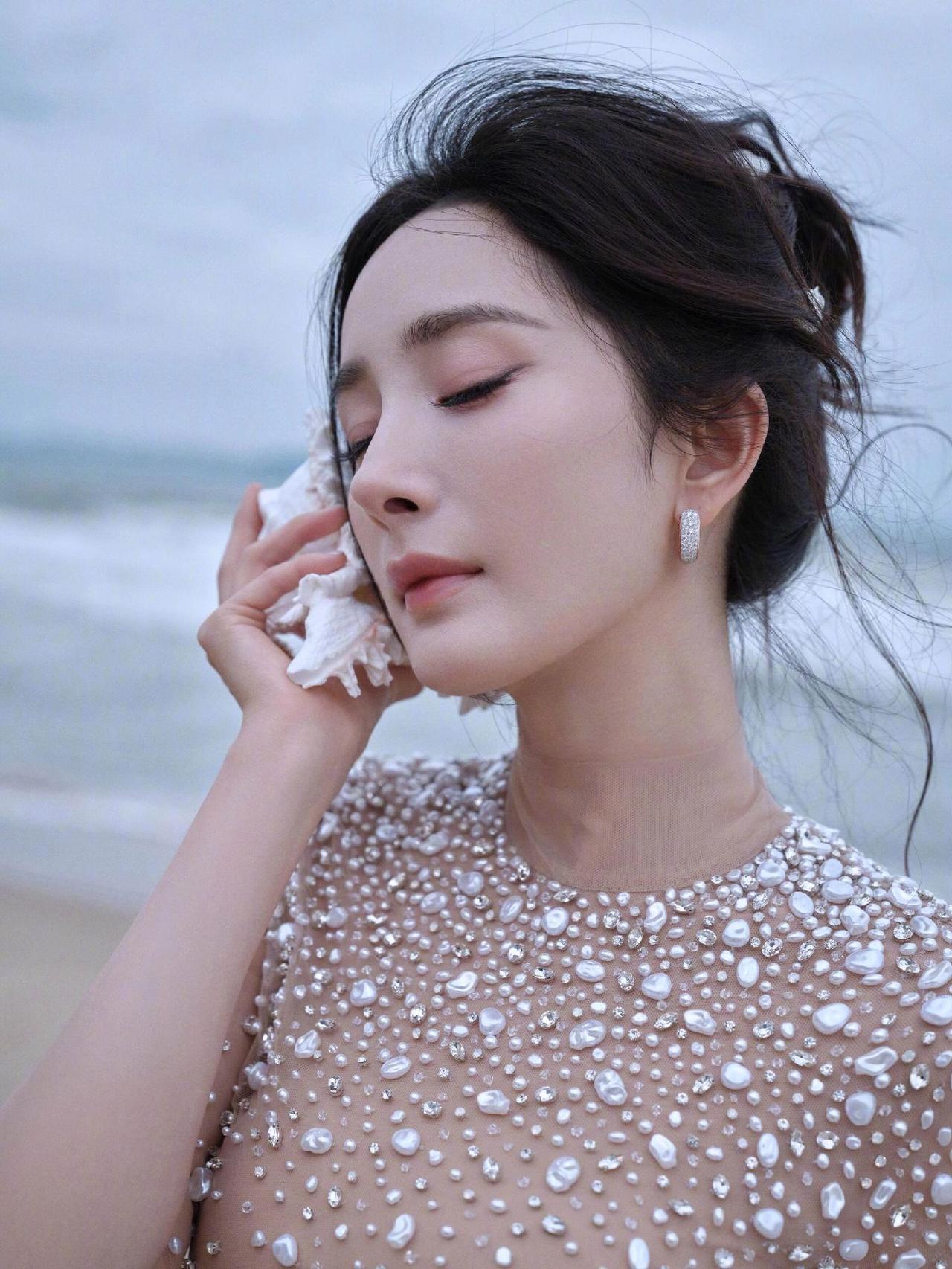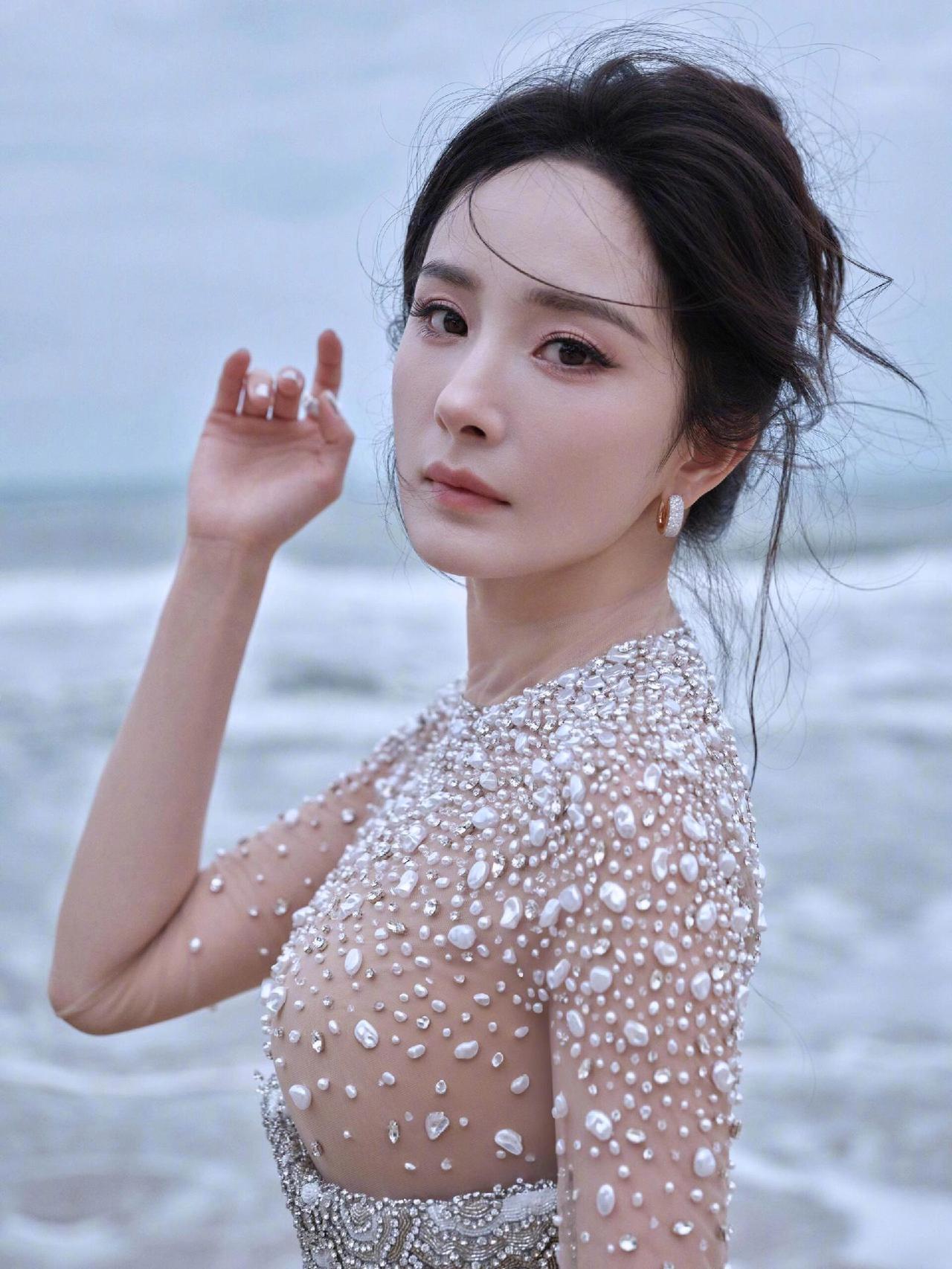 杨幂这身Miss Sohee 2025高定礼服太戳“人鱼神女感”了!珍珠+碎钻铺满的透视纱袖+层叠鳞片裙,像把海浪的光泽焊在身上;搭配Pomellato珠宝和CL紫高跟鞋,海边牵马的画面直接把“优雅贵气”和“空灵氛围感”拉满,是真·人鱼公主上岸既视感~杨幂 幂式穿搭