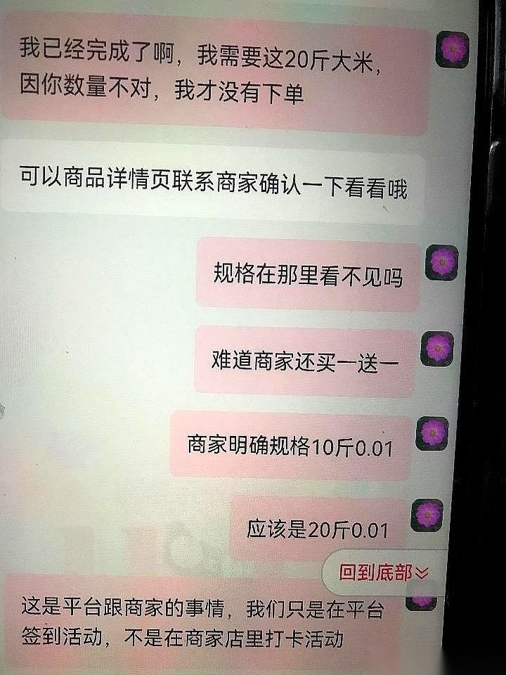 就为了那20斤大米,我愣是签到签出了上班的感觉。 一天不落,比老板查岗都准时。 结果你猜怎么着?临门一脚,页面上明晃晃地写着:10斤。 我当时就懵了。 不是,这什么操作?大米也能玩“图片仅供参考,产品以实物为准”这一套? 白纸黑字的活动,还能半路改剧本? 瞬间就想明白了。 他们赌的就是我们嫌麻烦,赌我们一看少了十斤,骂两句就算了。 毕竟谁会为这点东西去跟客服掰扯半天呢? 他们赌的就是大部分人的“算了”。 可我偏不。 这已经不是大米的事儿了,这是原则问题。 你把我当猴耍,我还真就得让你看看,这猴今天不乐意了。 来来回回,截图理论,把他们规则翻出来一条条对。 嘿,你别说,还真给我补发了。20斤,一斤没少。 爽是爽,但也真累。 所以说啊,以后再碰见这种送实物的活动,真得长个心眼。 能换现金就换现金,平台直接打钱,干净利落。 一旦掺和进什么第三方商家,这里面的水就深了。你以为你在薅羊毛,其实人家正拿着剪刀,等着给你“理发”呢。 付出就该有回报,这是天经地义的事。 别让咱们的认真,最后变成一个笑话。