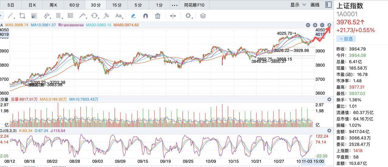 明天周二继续是赚钱的好机会!上周五已经分析了本周的走势,周初反弹,然后继续震荡,震荡的中轴线变成3980点,明天大盘继续上行的概率比较大,应该能重新走向4000点,4000点对a股有着重大的意义,这是10年来的第一次有辨识度的新高! 明天如果能突破3980点,就坐等逼近或突破4000点,很多板块都出现了赚钱效应,特别是前期强势的海南和福建板块依然坚挺,周五回调比较厉害的科技板块走稳,但是不排除本周后续时间继续回调。 今天盘面是一个反弹止稳的态势,个股涨多跌少,大盘的量能超过21000亿,总体健康,明天依然看好海南板块,这是一盘很大的棋,只能成功不能失败,同样福建板块也是一个重要板块,逢低吸筹!人生最大的快乐是当你觉得有机会的时候不要犹豫,勇敢前行!