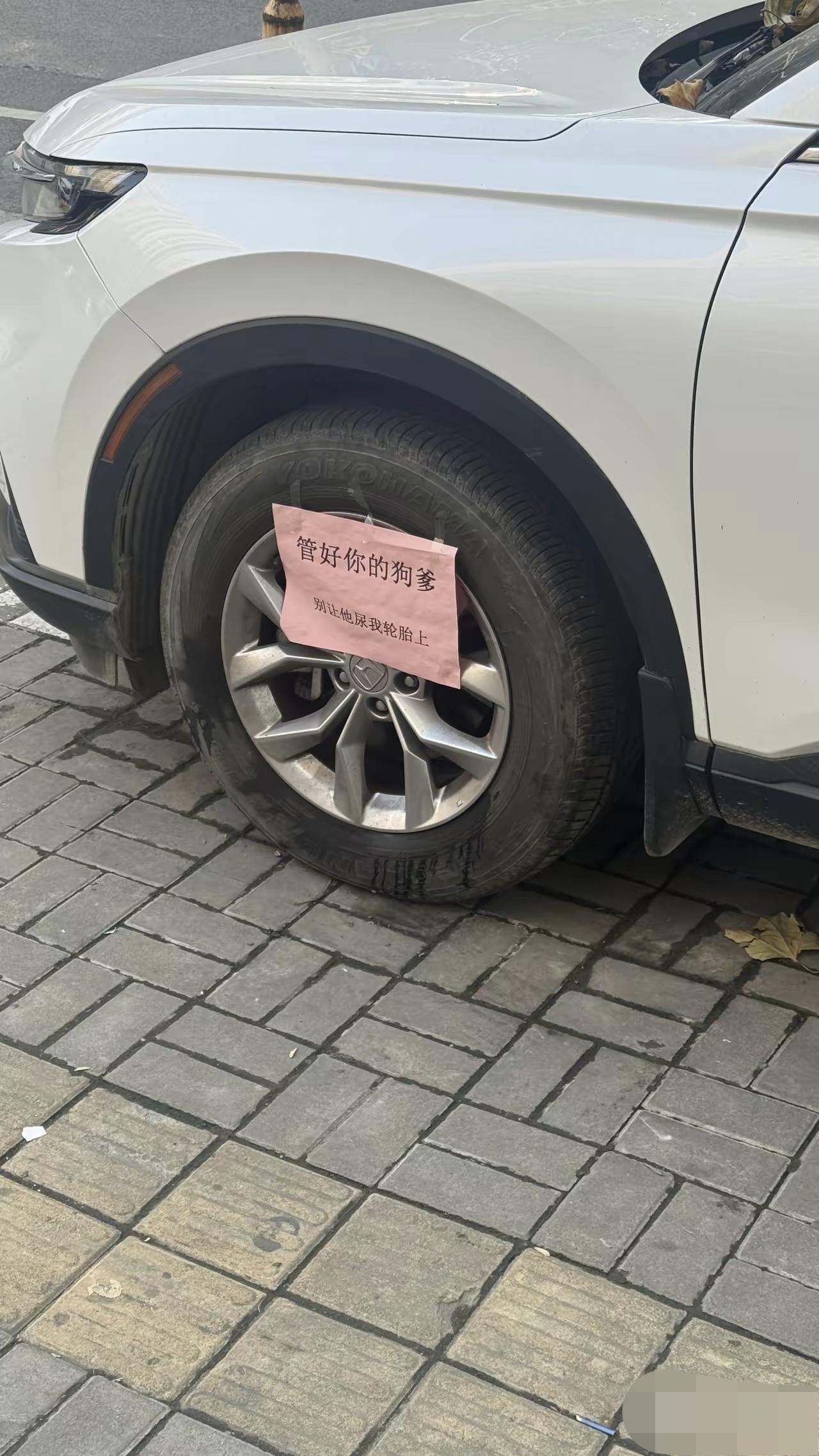 看痕迹不止一只狗尿在轮胎上啊[泪奔]怪不得大哥这么气愤呢