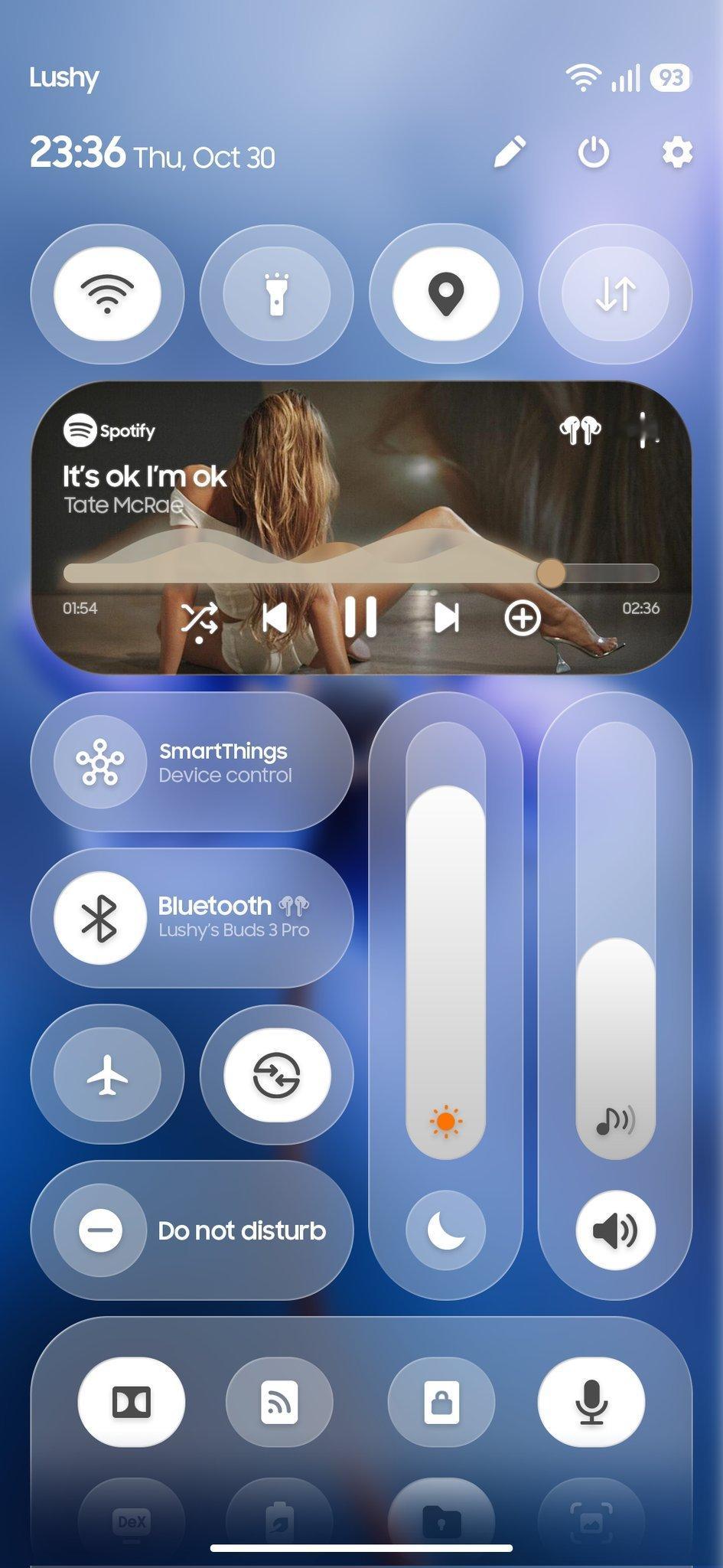 解读一下一位外国网友对 One UI8.5 的快捷面板创新性设计