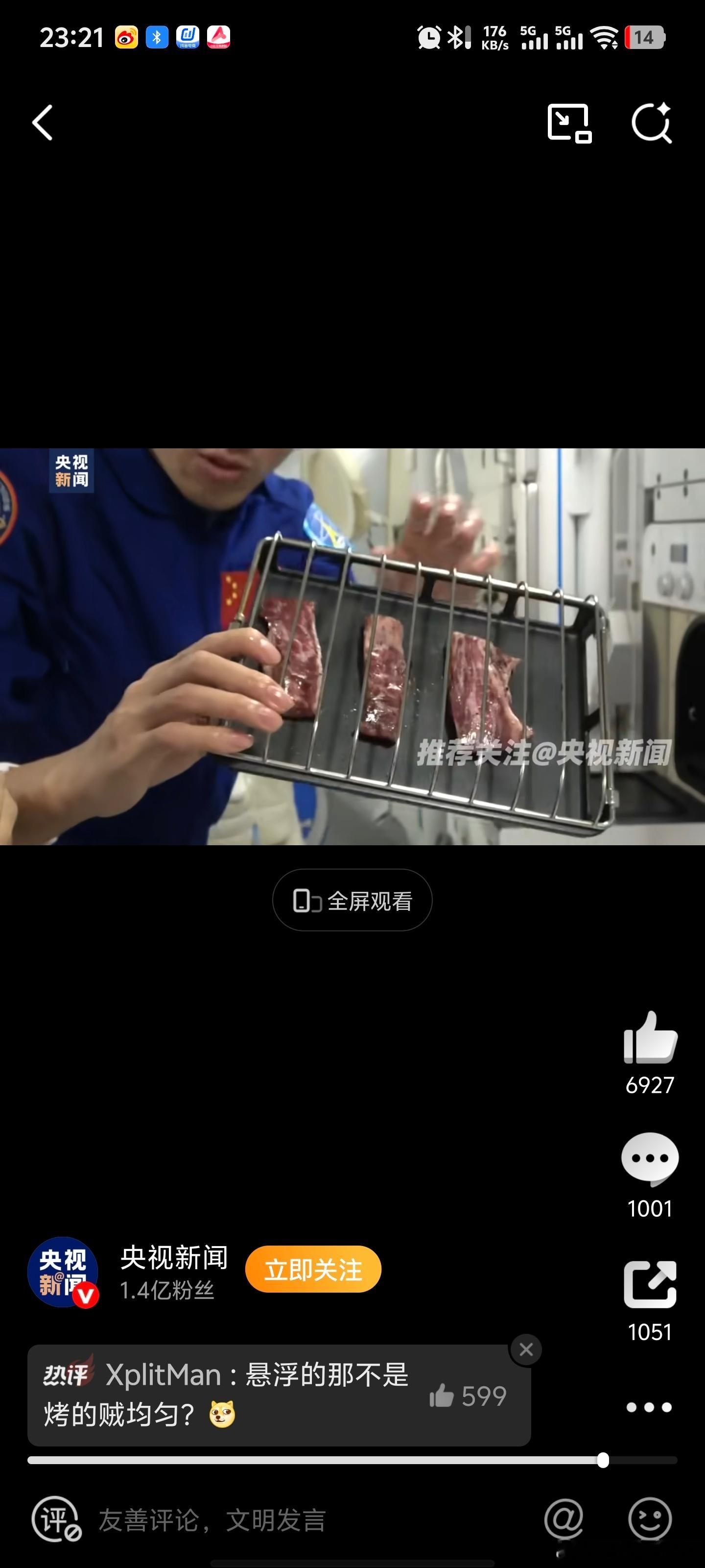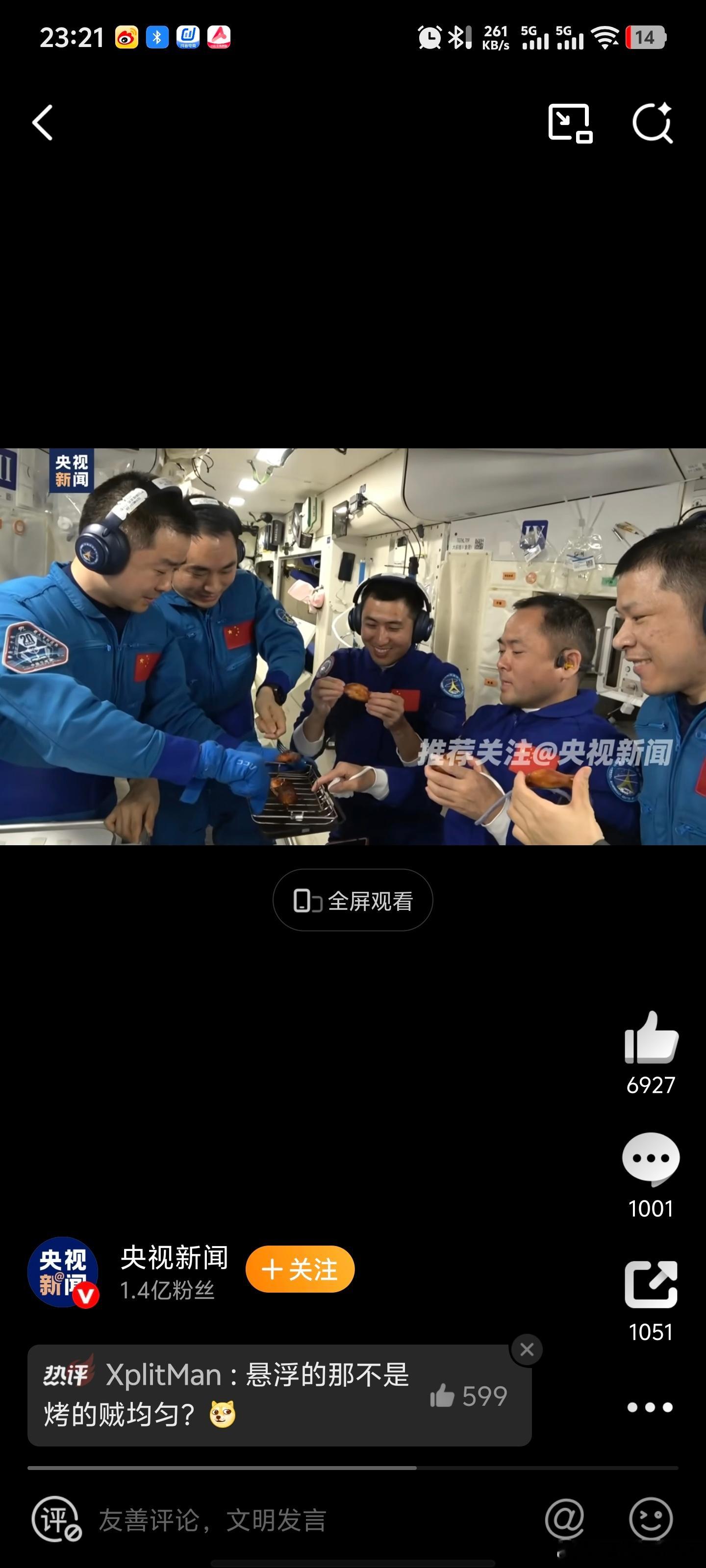 中国空间站可以吃烧烤了中国航天员太空烤鸡翅全球最顶级烧烤了