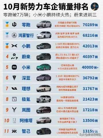 真是不看不知道,一看吓一跳啊!这新势力车企销量排名又变天了!曾经的销量一哥理想汽车的排名竟然掉到了第7名,连小鹏、小米、蔚来都打不过了。不过、最让人感到意外的是,零跑汽车居然不知不觉的爬上了冠军得宝座,销量比五界一起的鸿蒙智行还要多出一千多辆。 第一名零跑销量70289辆 第二名鸿蒙智行销量68216辆 第三名小鹏销量42013辆 第四名蔚来销量40397辆 第五名小米销量再次突破4万辆