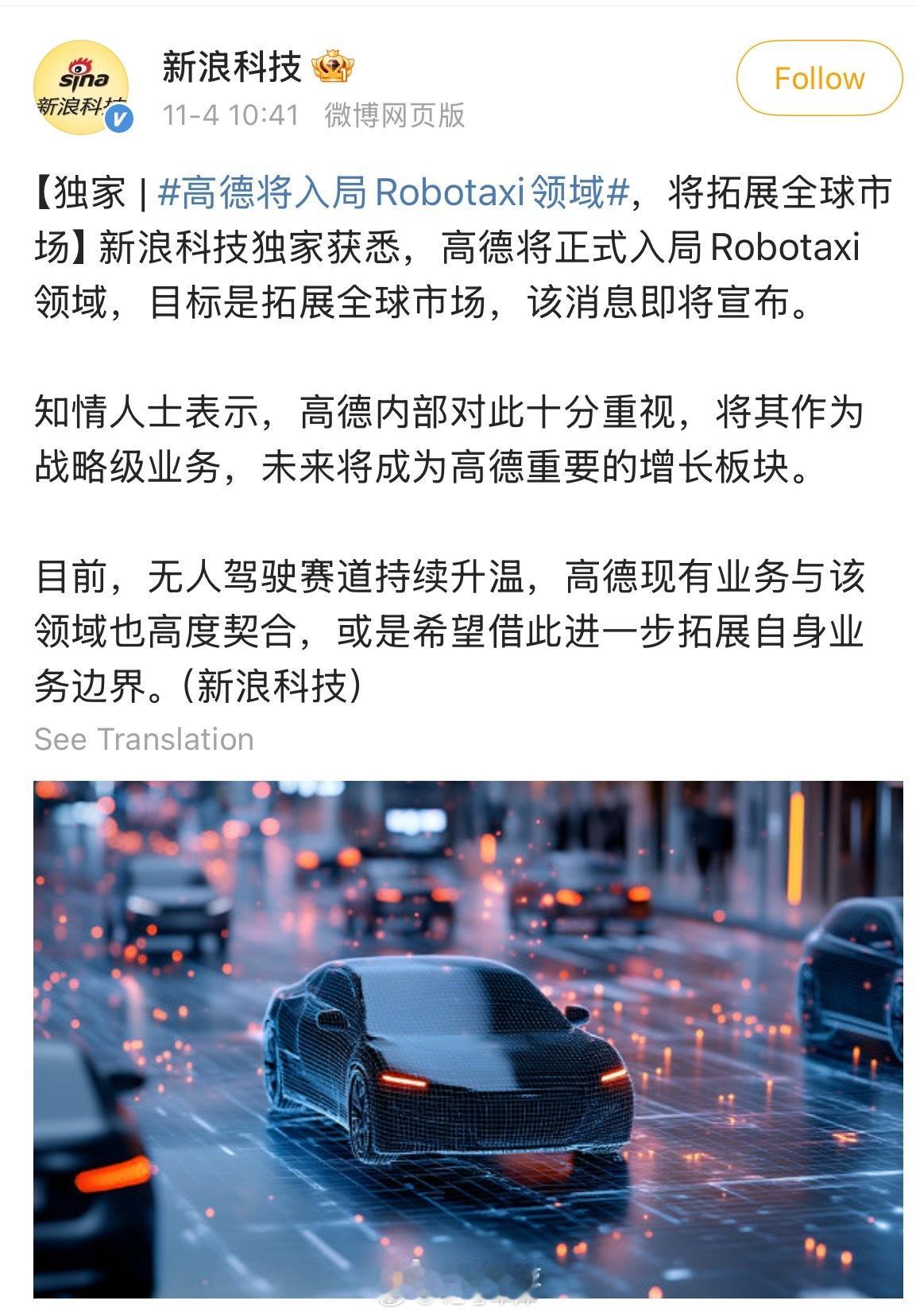 新浪科技消息,高德将入局Robotaxi领域 并且相当重视,目标是拓展全球市场。会和哪家车企合作?