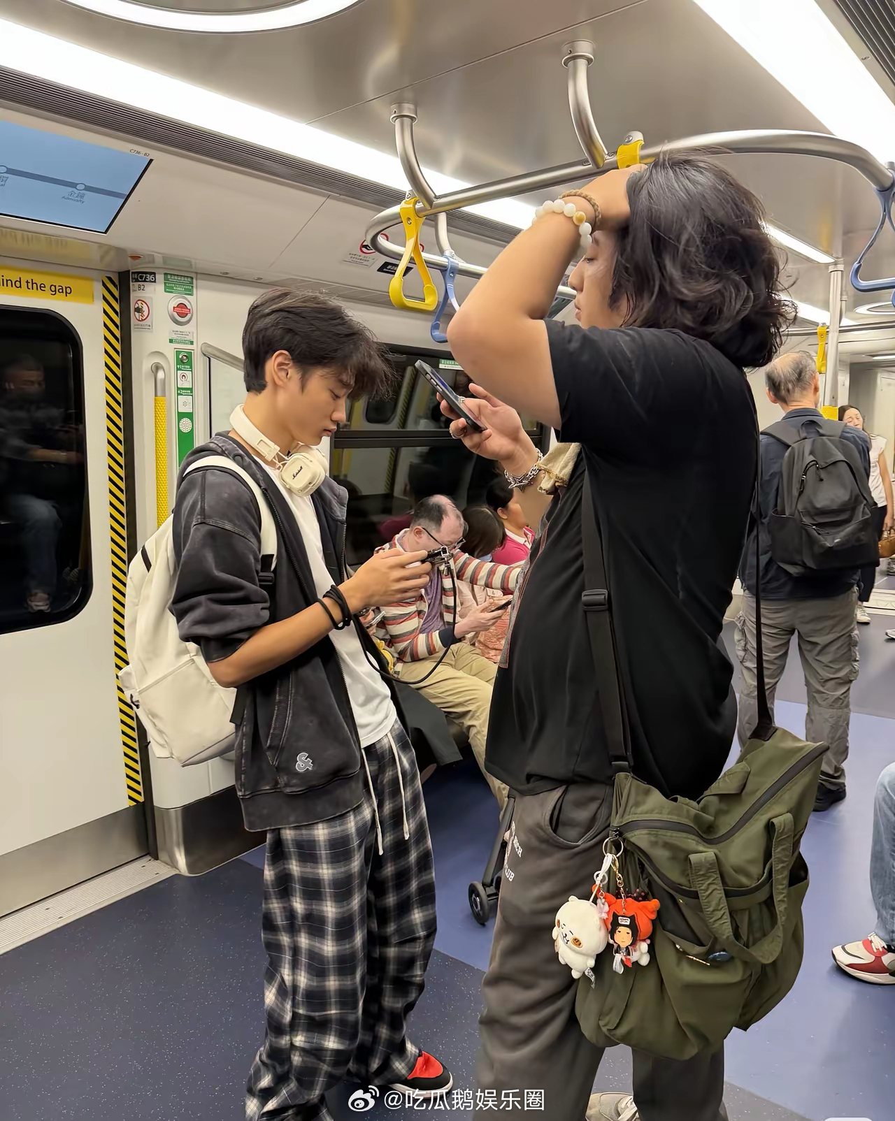 在香港地铁偶遇到杨阳洋和费曼,杨阳洋长成了型男,费曼变化好大!