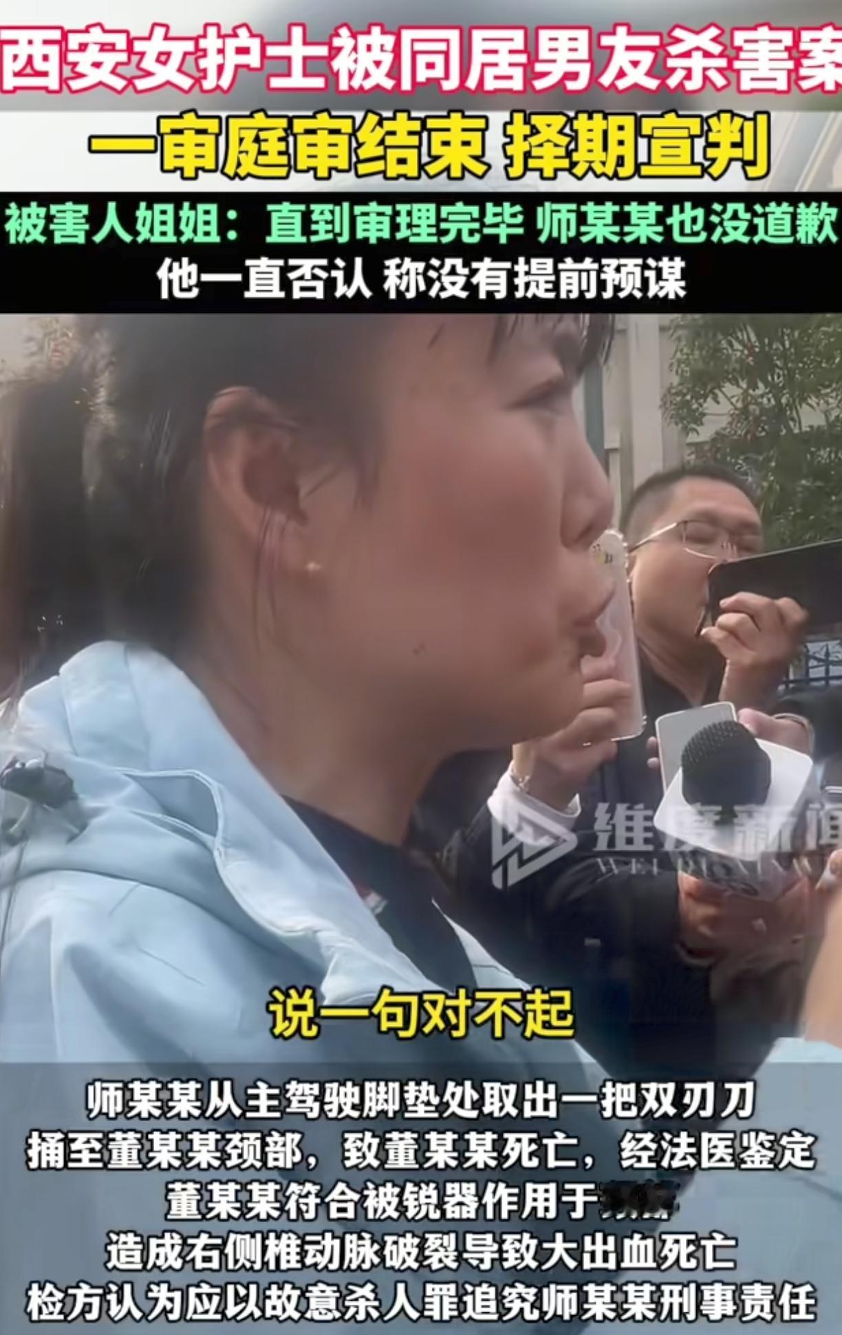 西安女护士男友师某豪拒不认罪,还想抵赖,否认故意s人,之前的两次笔录他都承认了,拿了一把dao戳进去,现在又矢口否认,说自己是喝酒上头了! 哪怕是临到开庭审理完毕,他连一句“对不起”都没有向被害女护士家人父母说过,据护士姐姐说“师某在里面红光满面,在我们陈述事实的时候,不仅打断,还骂公诉人,否认自己是有预谋的”,dao都是提前买好的,这难道不算提前预mou? 对方律师怎么敢去当辩护人的,这种人就不应该有人为他辩护呀!