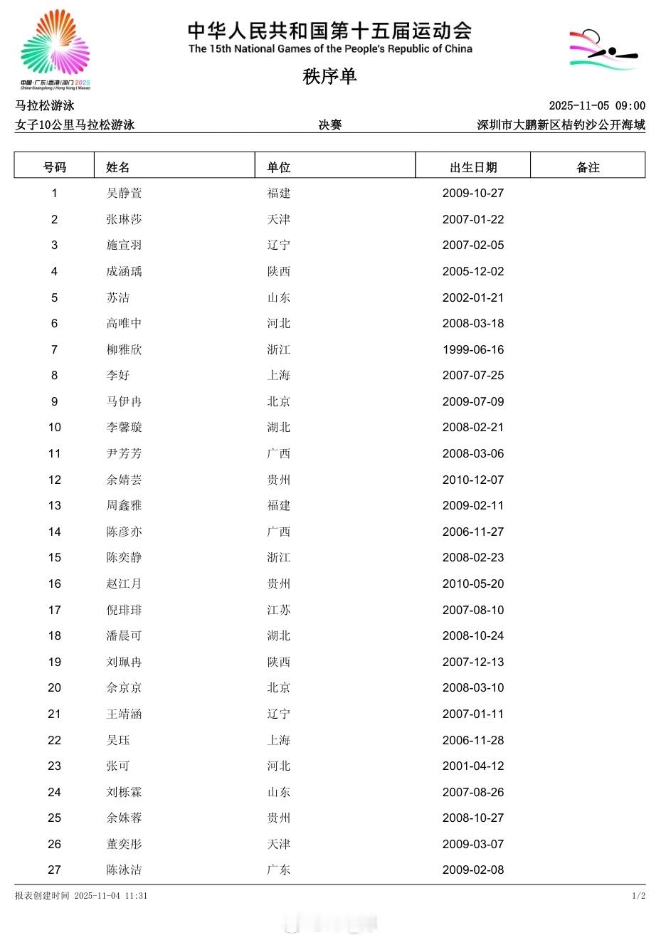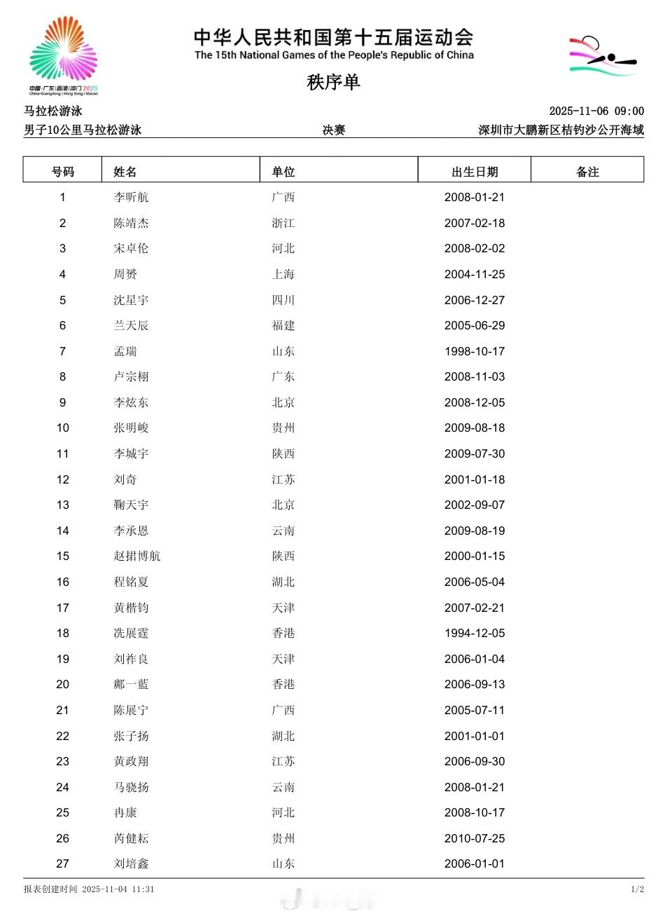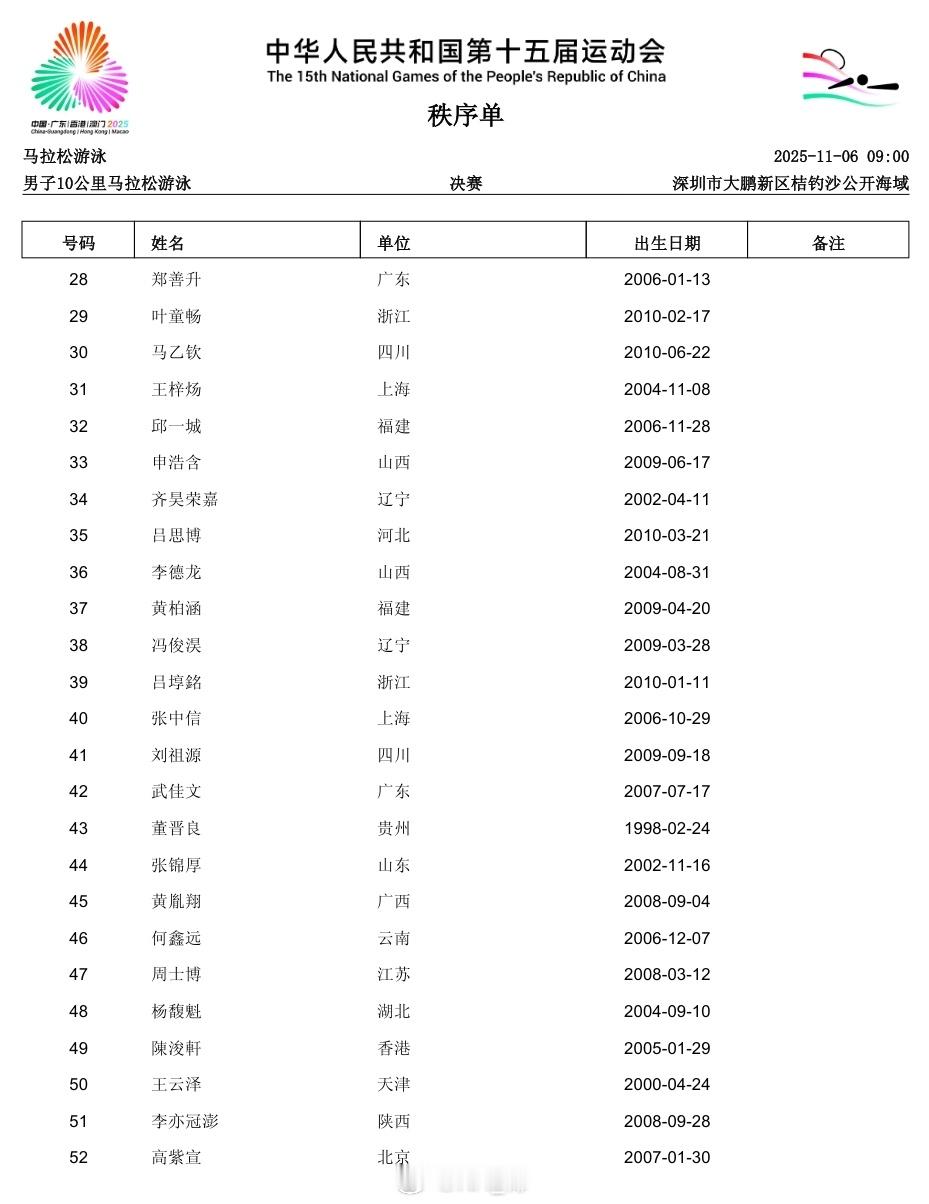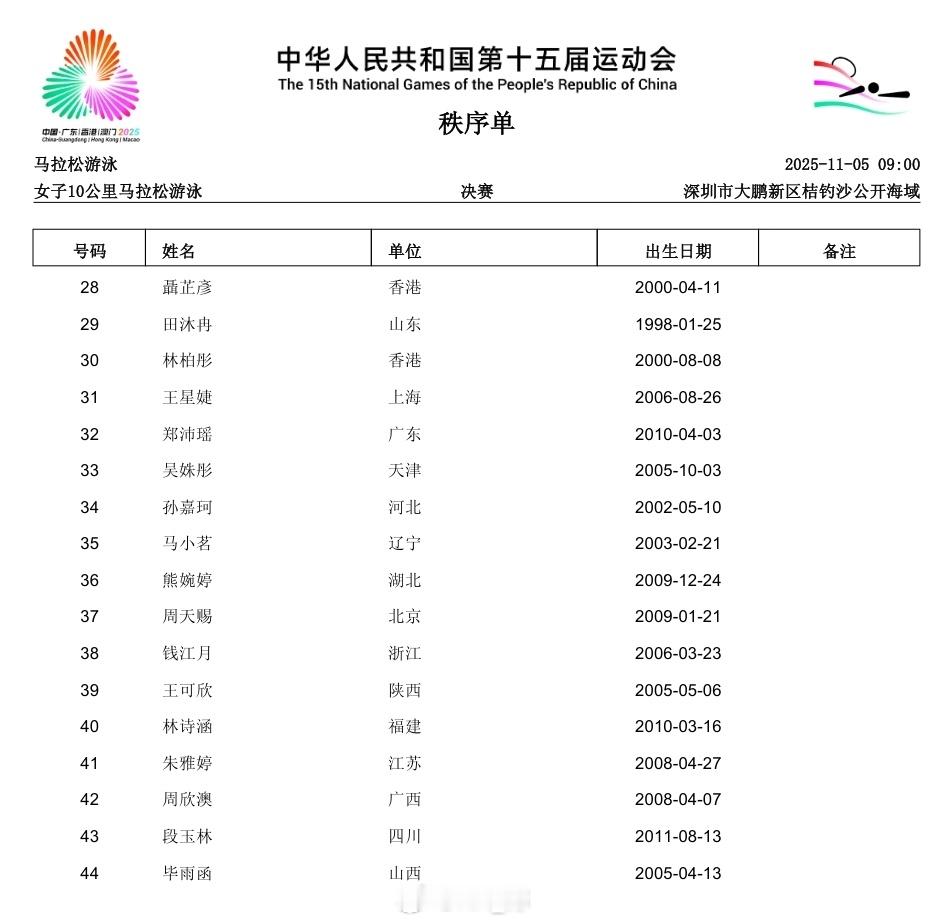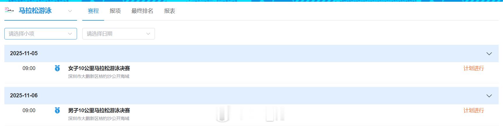 第十五届全国运动会 马拉松游泳(11.5-6)明后天早上9:00开赛