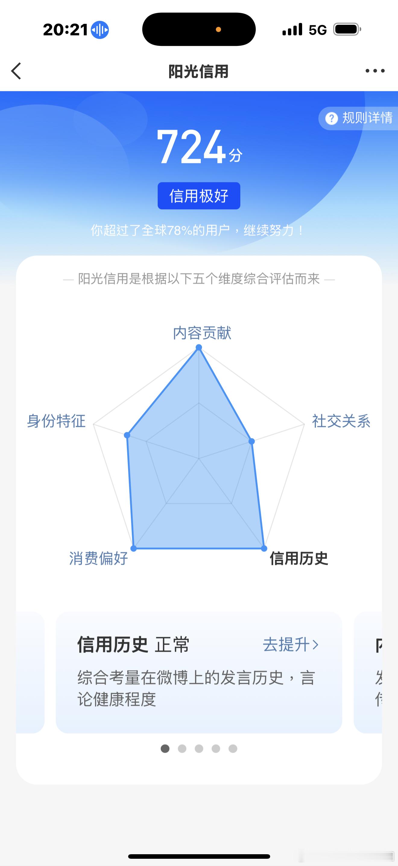 什么情况,两年没动的信用分今天突然涨到724分了[doge]而且我看了一下广场好