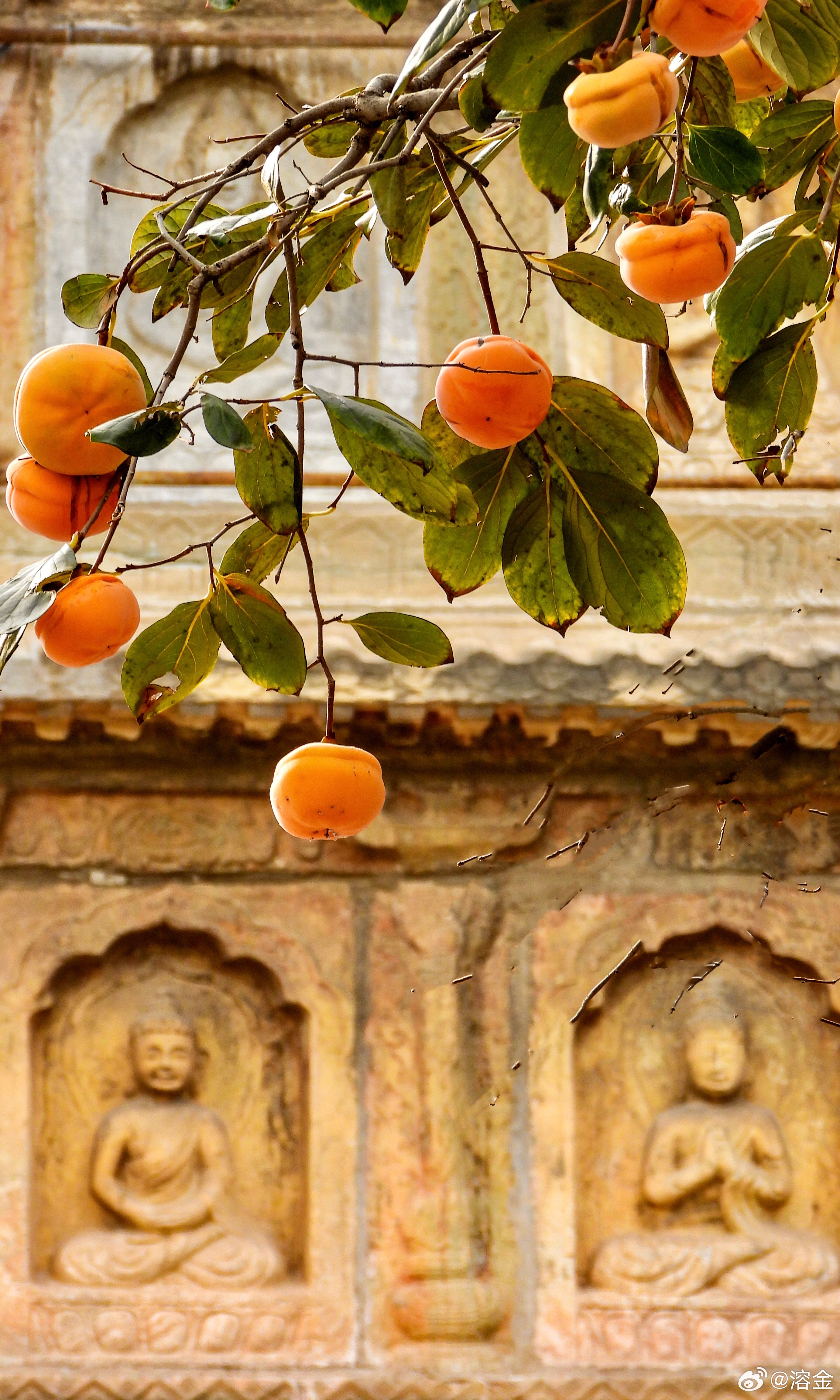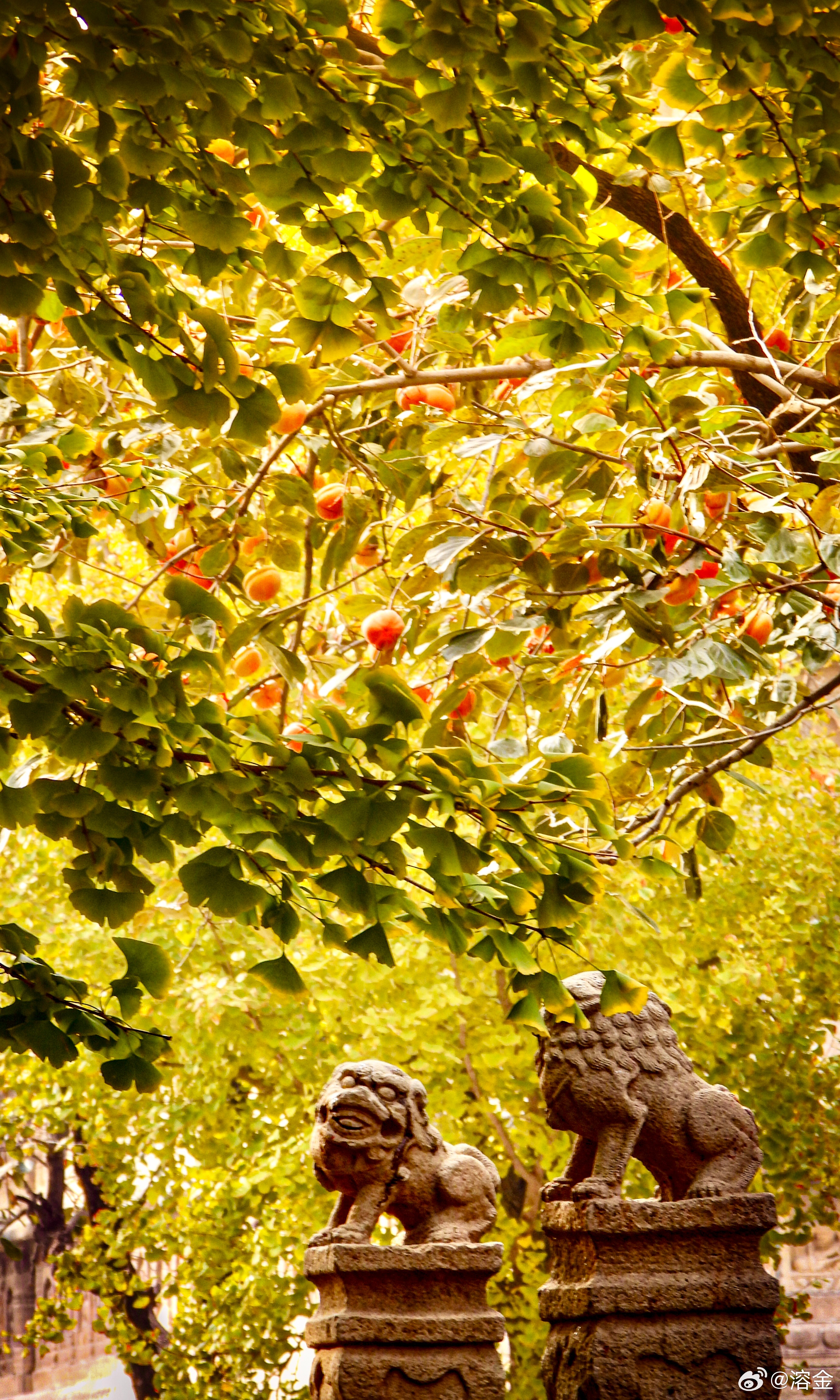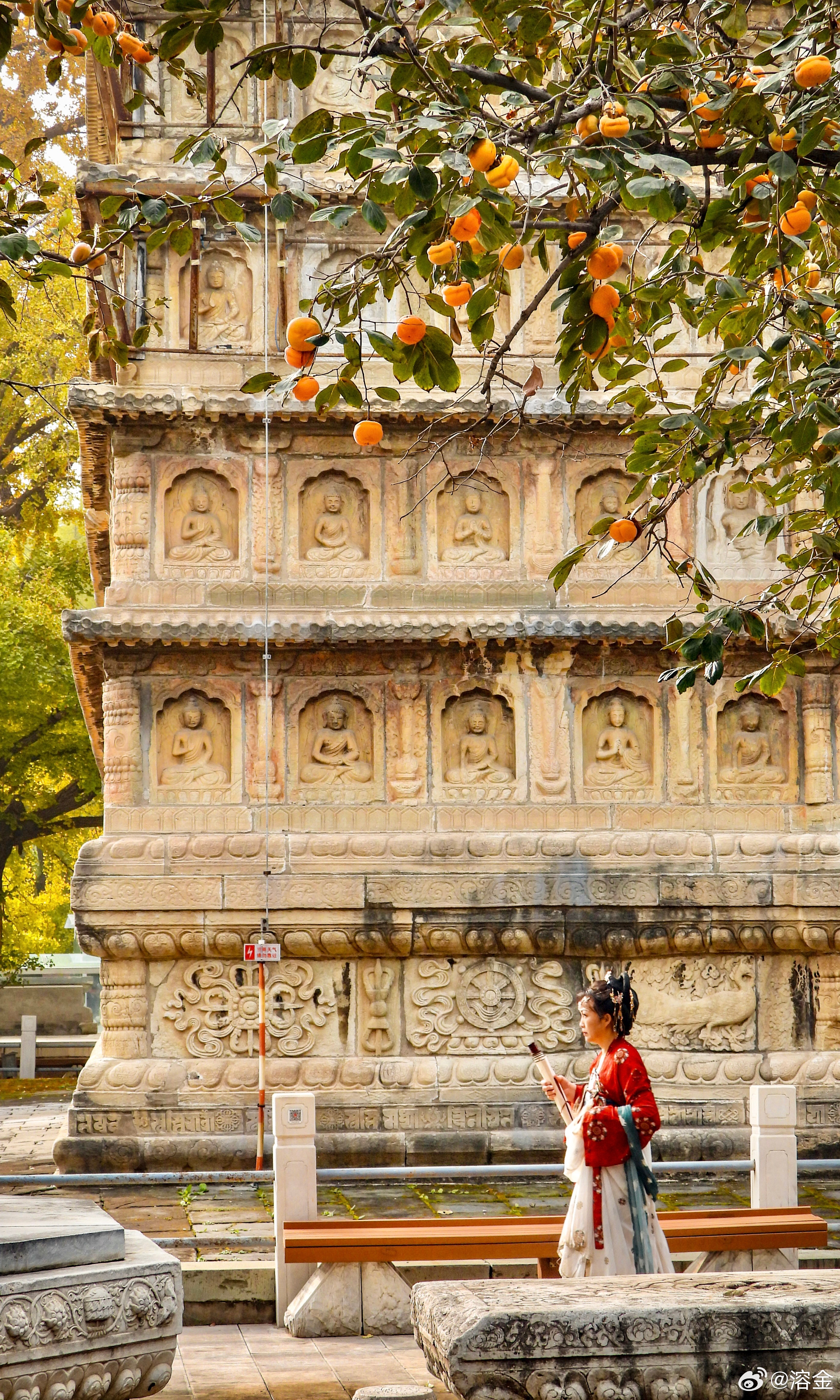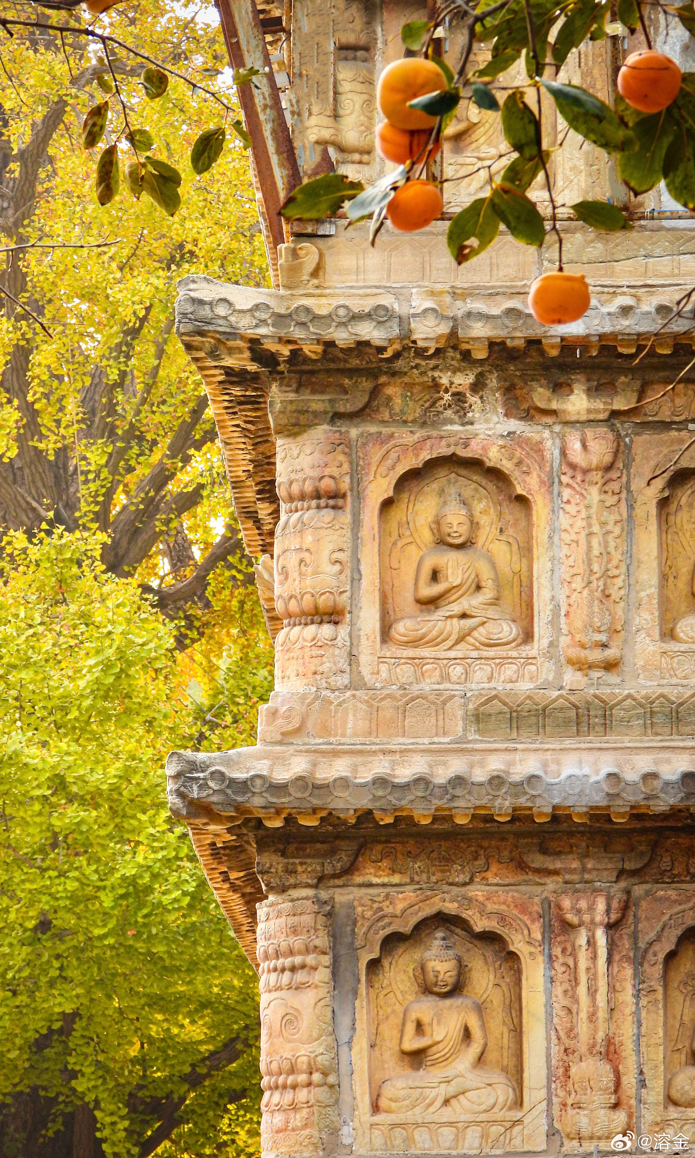 【五塔寺】古寺塔如笔,银杏画秋章。客来阶下立,仰见柿子黄。摄影