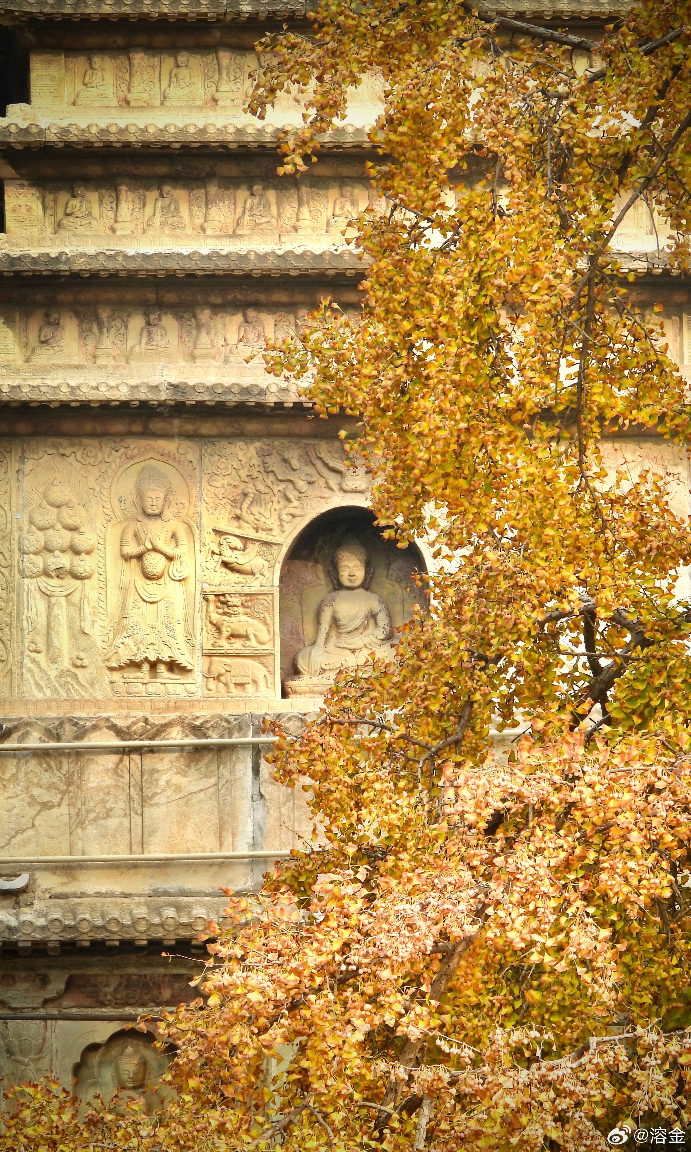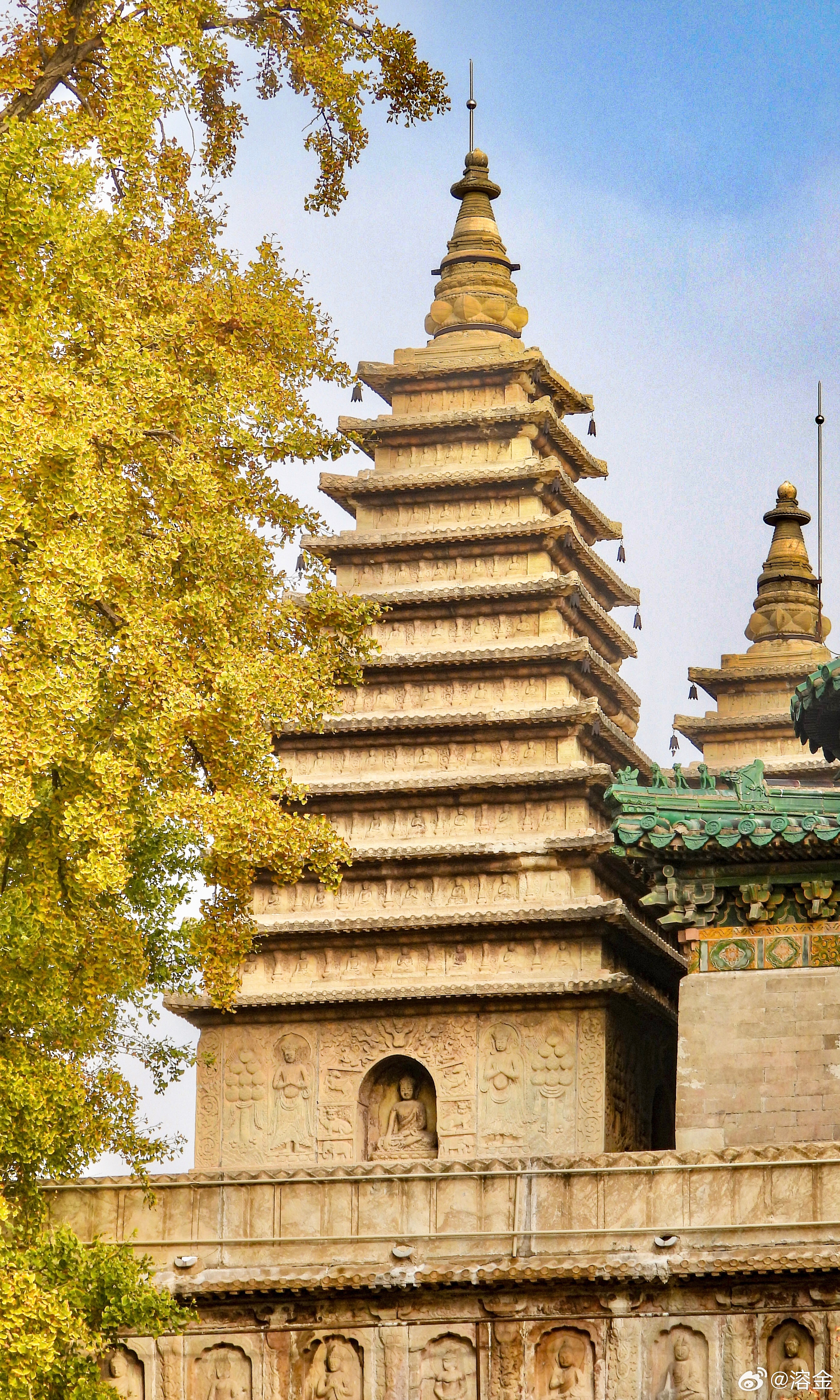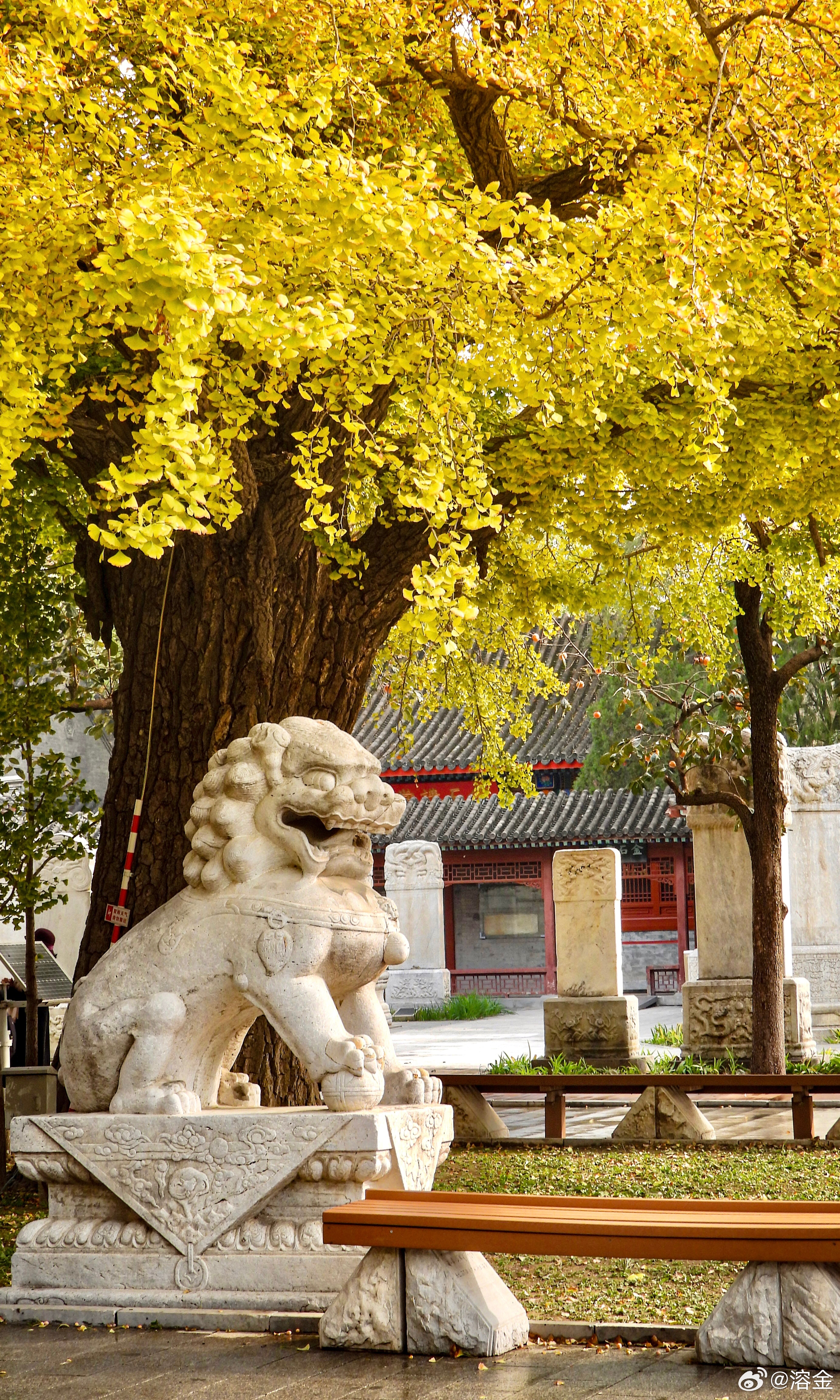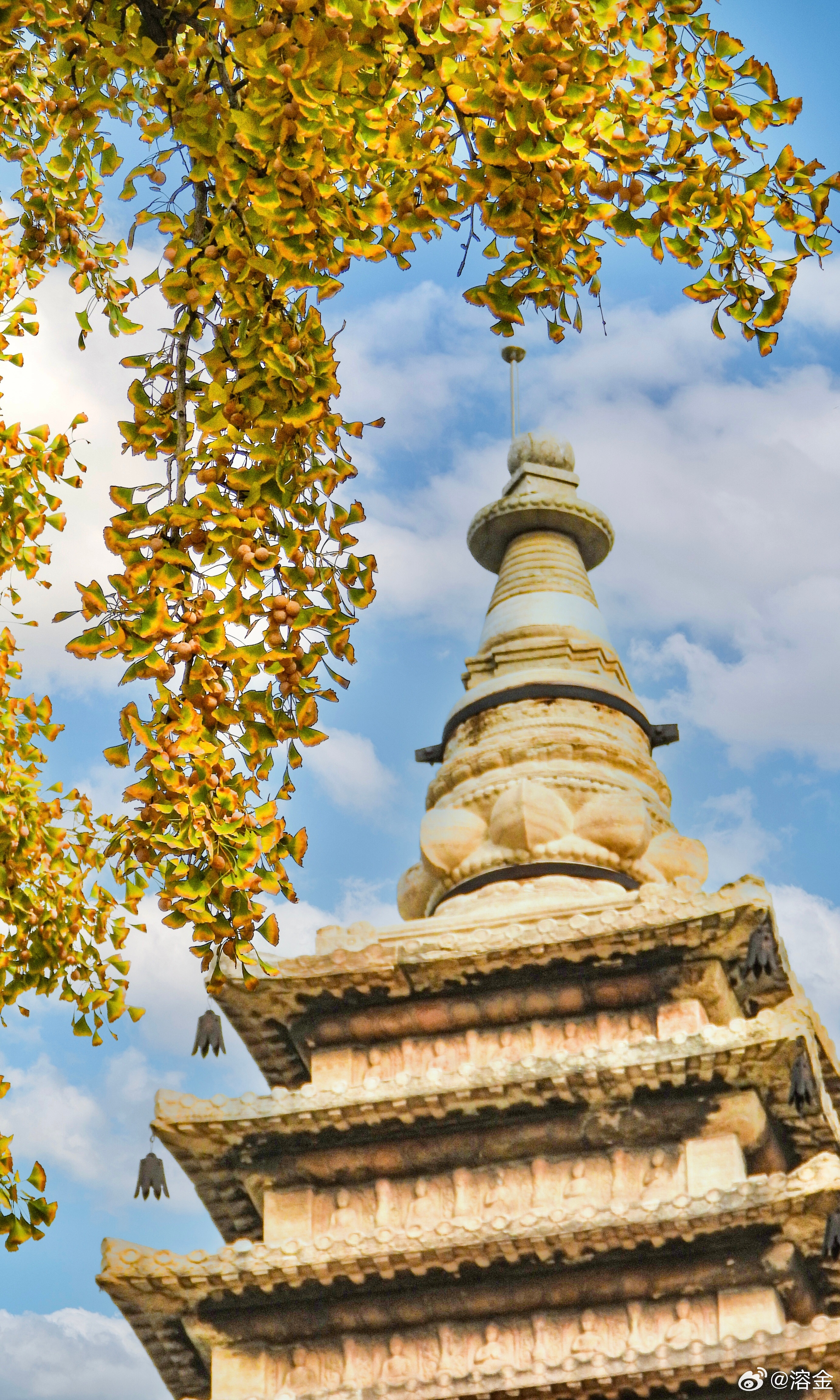 【五塔寺】古寺塔如笔,银杏画秋章。客来阶下立,仰见柿子黄。摄影