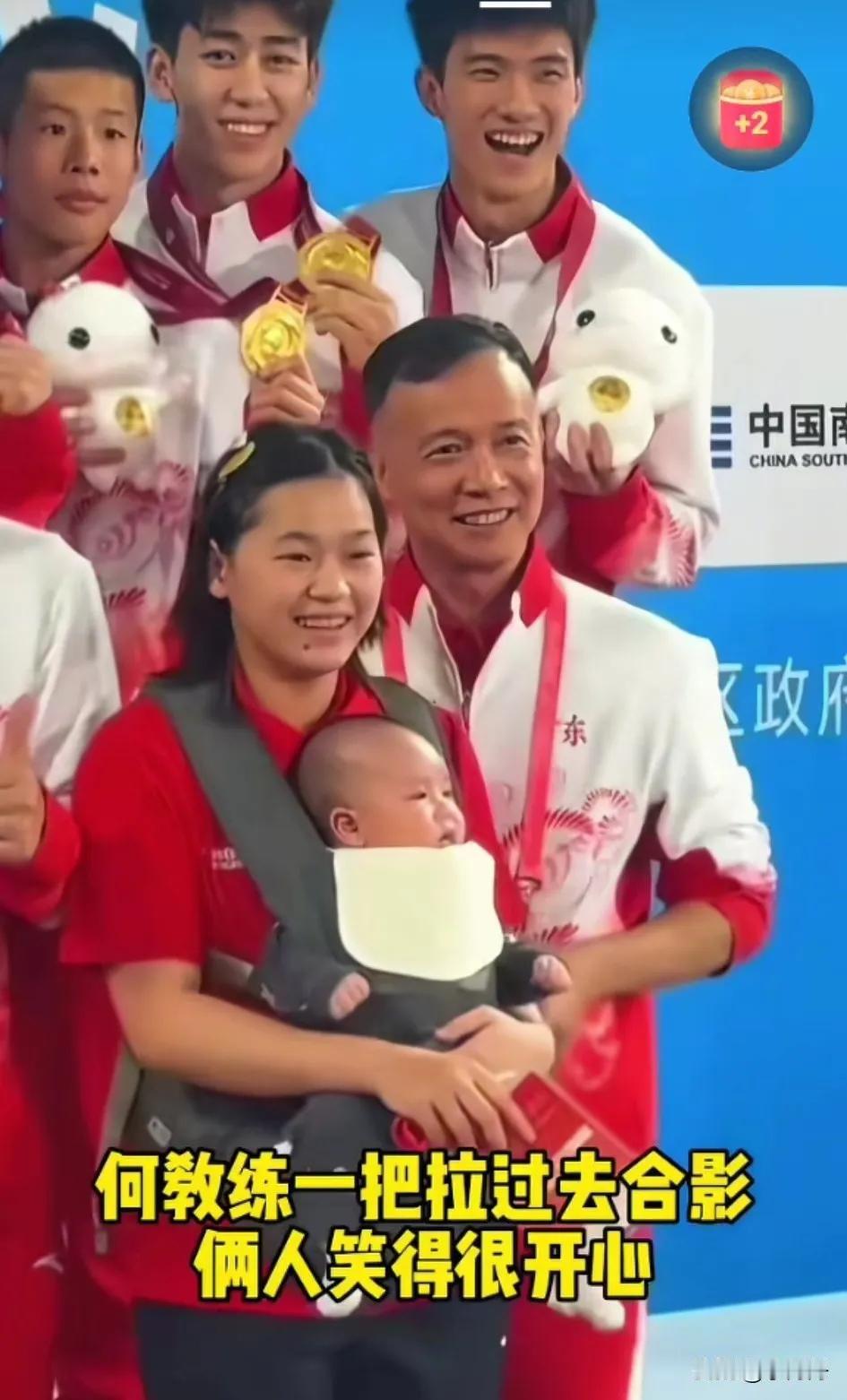 谁注意到这个细节,当婵宝把小宝宝递给谢思易的时候,然而婵宝小心翼翼的托着小宝宝的后脑勺,带过孩子的应该都懂得,婵宝真的太懂事了,心还那么细! 温馨带娃画面展现了婵宝懂事善良的一面。 有网友说全宝在广东队太开心了!退役后回广东队作何教练的助理吧,又开心又自在,还离家近,远离事非,远离圈子,远离资本,过平静自在的生活。 话说婵宝真的太可爱了,在广东队这个冠军团体里人缘这么好! 爱和喜欢是藏不住的,师父真的很稀罕婵宝! 感觉何教练是一位非常友善正直的好人,有这么好的教练真是全红婵的好运气!