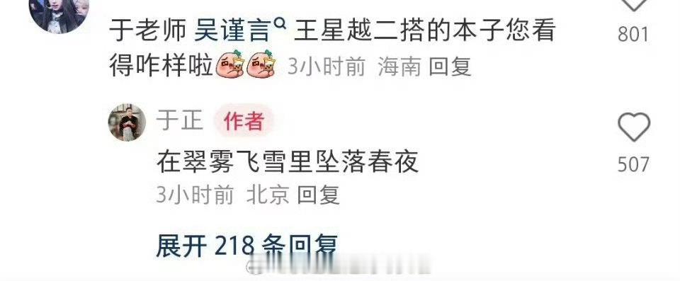 于正不止一次说说《坠落春夜》就是吴谨言王星越二搭了,剧本完成五集了,搞快点吧,单论选角真的很合适,何况还有二搭热度在
