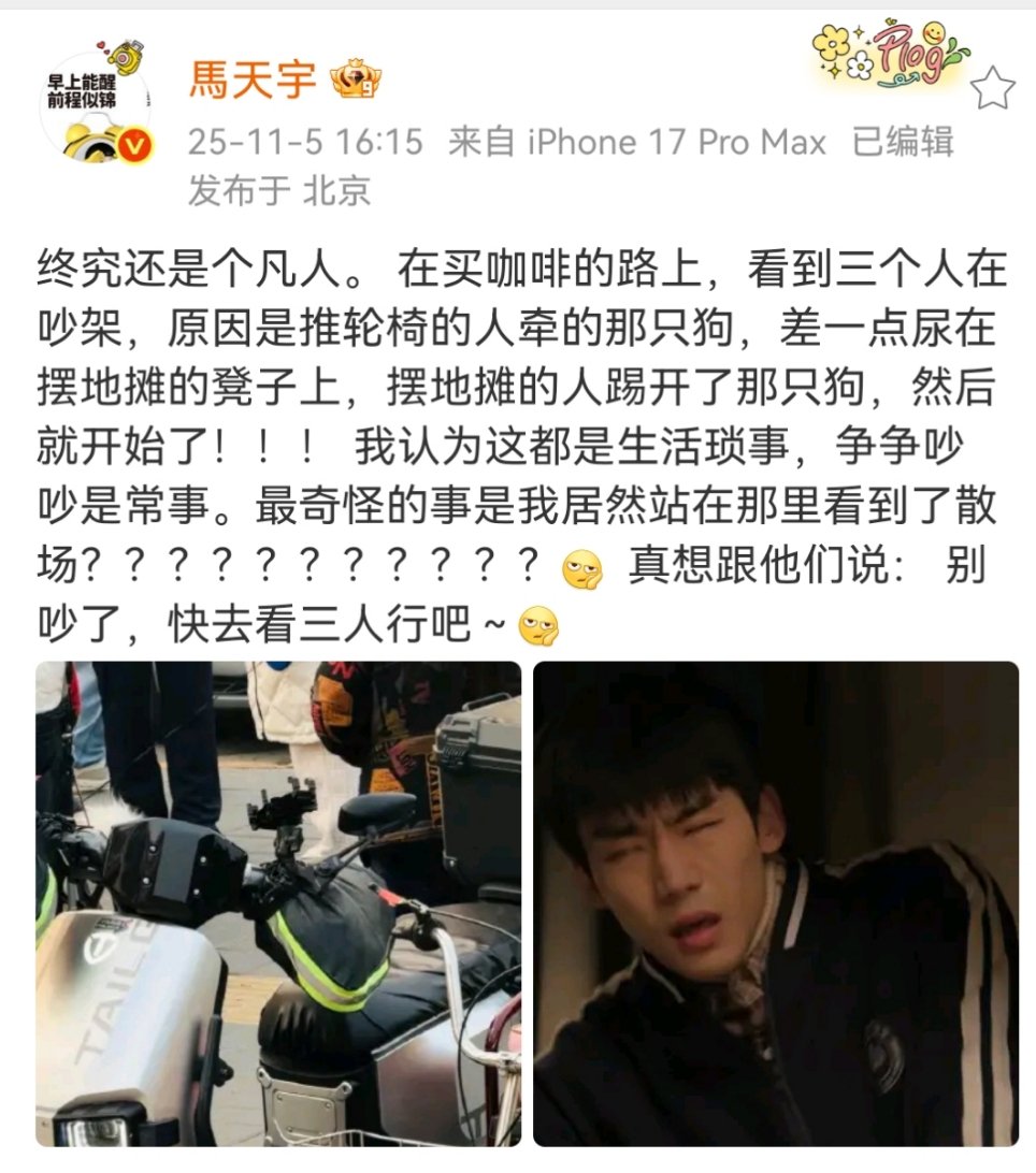 马天宇路边看路人吵架马天宇看路人吵架看到散场谁能忍得住吃瓜啊