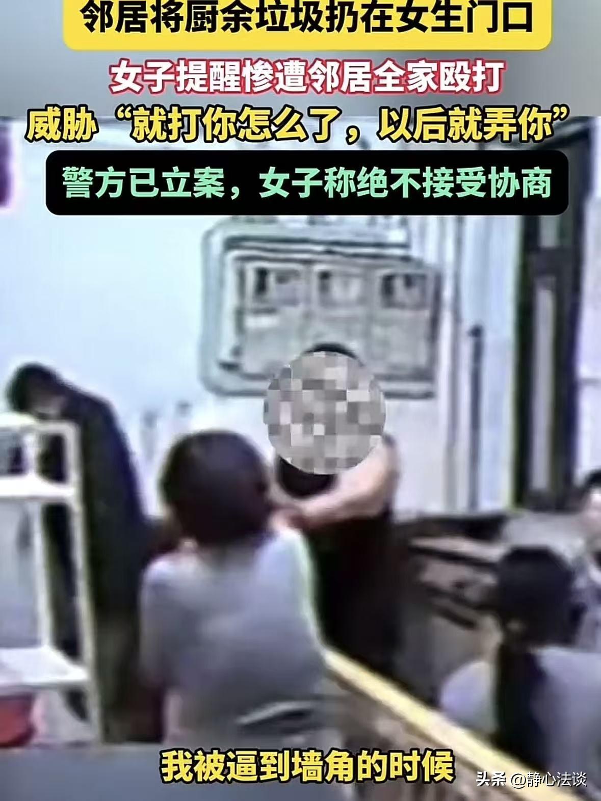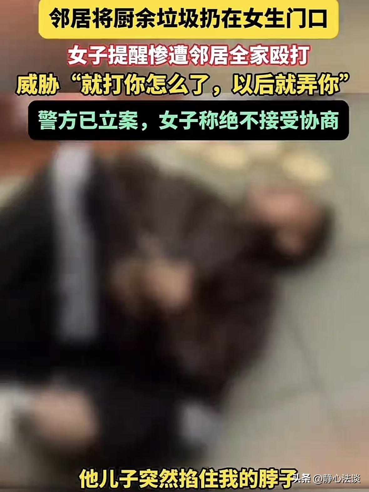 上海,80岁老头总将垃圾丢在女子家门口,汤汁流的到处都是,恰巧被回来的女子发现,便说了一句你不要把垃圾扔在我家门口,谁知老头一听直接大怒,上来使劲推搡女子,边退边喊:你不要推我!这一喊,大爷的儿子醉醺醺的从屋里子冲出来,一把掐住女子的衣领就要往家里拖,女子大喊别碰我,门上有监控,万万没想到这话直接惹怒对方,一家人对她拳打脚踢,表示打的就是你,以后见你一次弄你一次! 一女子和表妹租住在上海的一栋老校区里,该房子一梯两户,没有电梯,楼道又窄又暗。 对门是一对80岁的老两口,这天女子和表妹拎着东西刚爬上楼,刚好碰到出门丢垃圾的邻居大爷。 女子顺着目光一看,好家伙,一堆鼓鼓囊囊的垃圾袋又扔在自己家门口了。 黄澄澄的菜汤顺着袋子下面的洞往下淌,还顺着楼道的缝隙往楼下滴,黏糊糊的看着就恶心。 走到跟前还闻到一股刺鼻的馊味,混合着菜汤、果皮的酸腐气,差点没把她呛着。 女子见状就气不打一出来,住对门的这80岁大爷大妈,不知道是图省事还是怎么着。 总爱把垃圾往她家门前堆,有时候是早上堆,有时候是傍晚,说了好几次都没用,转头该怎么堆还怎么堆。 眼见大爷要关门回屋,女子说了句以后不要把垃圾放在我家门口。 却没想到,这话刚说完,大家关门的手直接将门打开,眼睛瞪的圆溜溜,上来就狠狠的推了女子一把。 女子不知道大爷会动手,被吓了一跳,被推了一个趔趄后,女子没有还手。 她想着毕竟对方年纪太大,万一要是讹上自己最后有理都说不清。 最主要的是还没等女子说话,大爷紧接着边推女子边喊:你不要推我! 这波操作直接给女子整懵了,还没等他反应以来,大爷的儿子从屋里窜了出来。 对方50多岁,长得又高又大,貌似还喝了酒,醉醺醺的一把掐住女子的衣领,使劲往家里拽。 那力道大得惊人,女子感觉自己的呼吸瞬间就困难了,脖子被掐得生疼,脸一下子就憋红了。 旁边的表妹吓得大喊,随即拿出手机就赶紧报警。 女子眼见要吃亏,这一家人都不是讲理的主,她挣脱束缚,大喊不要拉我,门上有监控,都拍着呢。 她以为有监控能让对方收敛一点,谁也不想把事情闹大,留下证据对谁都不好。 可万万没想到,这句话不仅没起到威慑作用,反而像是点燃了炸药桶,直接把这一家人惹毛了。 大爷的儿子一把掐住女子脖子给她按到地上,爷俩对她一顿拳打脚踢。 边打边咬牙切齿的说:监控又咋地,打的就是你,以后见你一次弄你一次。 话音刚落,大爷的老伴也从屋里冲了出来,手里还拿着个鸡棍子,对着女子的身上就使劲抽打。 边打边骂,我家老头子这么大年纪了,你还欺负他,看我怎么打你。 一家三口就这么围着女子拳打脚踢,任凭表妹小小的身躯根本就拉不住。 女子被被打得毫无还手之力,只能抱着头蹲在地上,大喊救命。 没一会帽子叔叔来了,这一家人统一口径,就说是女子先动的手打人。 就连围观的邻居也都听信大爷的说词,指责女子是她先动的手。 那大爷的儿子还当着民警的面又给了女子一拳,被警察拦住。 此时女子已经被打的浑身是伤,疼的浑身发抖,已经走不了路,但是他都没有哭,她怕这一家下手会更重。 后来救护车来了,将女子从6楼抬下去,直到上了救护车,女子才敢流泪。 目前,女子表示与表妹已搬家,警方已经立案,但表示自己不会接受任何调解。 后来这事被传到网上,评论区都炸锅了。 纷纷指责,大爷都80多岁了,谎话张嘴就来,这要是没有监控真是有理都说不清了。 这年纪大也不是倚老卖老的理由,公共区域本来就该大家爱护。 再说这一家人,也太可怕了,如果是一个人嚣张,那是一个人的问题,但这一家子都嚣张,那就是他们的家风有问题。 《治安管理处罚法》 第43条:殴打他人或故意伤害他人身体的,处五日以上十日以下拘留,并处二百元以上五百元以下罚款。 情节较轻的,处五日以下拘留或五百元以下罚款。若结伙殴打,处十日以上十五日以下拘留,并处五百元以上一千元以下罚款。 80岁大爷及儿子老伴多人对女子拳打脚踢,符合结伙殴打情形,若伤情为轻微伤,可依此条处罚。 《民法典》第1165条:行为人因过错侵害他人民事权益造成损害的,应当承担侵权责任。 《民典法》第1169条:侵害他人造成人身损害的,应当赔偿医疗费、护理费、交通费、营养费、住院伙食补助费等为治疗和康复支出的合理费用,以及因误工减少的收入。 后期女子你们可把监控录像作为证据,证明自己未先动手及对方的殴打行为,是核心证据,应及时向警方提供并要求伤情鉴定。 因此可要求打人者承担民事赔偿责任,赔偿其因伤产生的各项费用。 话说回来,人们常说远亲不如近邻,邻里之间,退一步海阔天空,遇事冷静,好好说话没有解决不了的事。 毕竟,和睦相处的邻里关系,才是最珍贵的烟火气,你说对吗? @静心法谈 学法辨是非,慬法不吃亏。