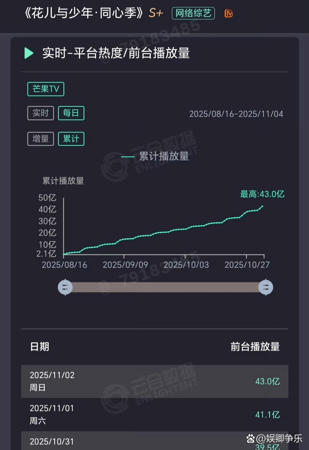《花儿与少年7》播放量已突破43亿,创花少系列历史新高!