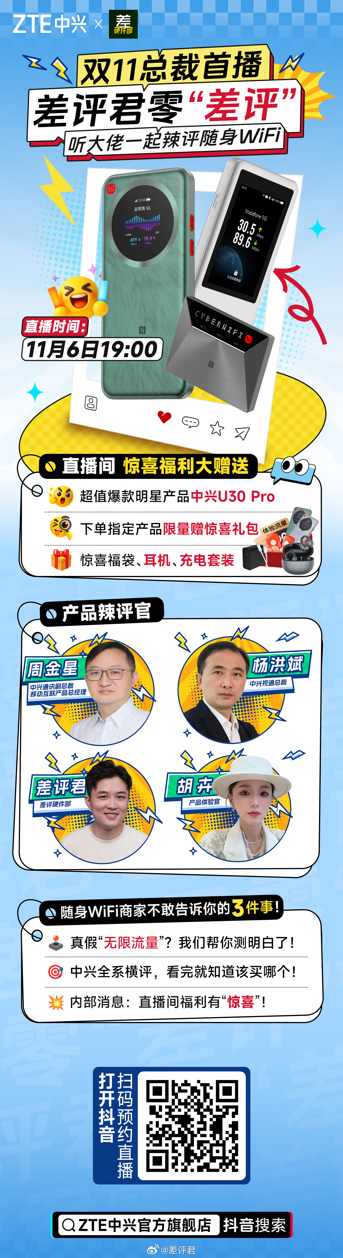 随身WiFi水有多深?11月6日晚7点,来看我们跟中兴一起聊聊行业的秘密!