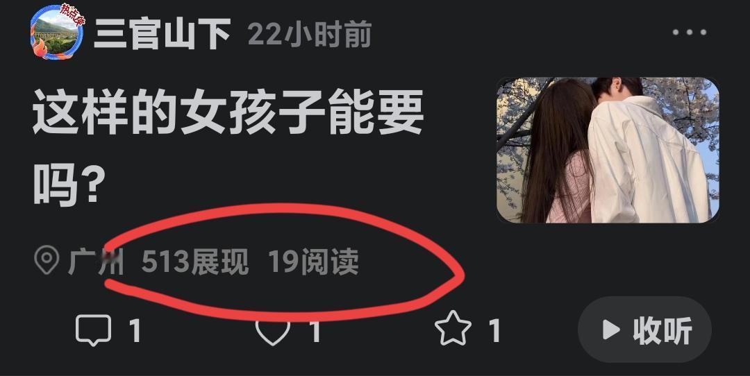 这个在头条里, 算不算密㊙️呢? 昨天我写的一篇400出头字的! 我个人认为是文章的,于就把它在文章上发了出去,但过一二个小时,展示量不足300,而阅读量更是惨不忍睹的个位数。 而后来我又把这篇存草稿400多字的,把它算的微头条来一顿乱发,今天我意想不到的留意到,我的这二篇不栏目的作品,无论展示量与阅读量,有着天壤之别般的区别! 这又是为什呢? 有谁能共鸣的?