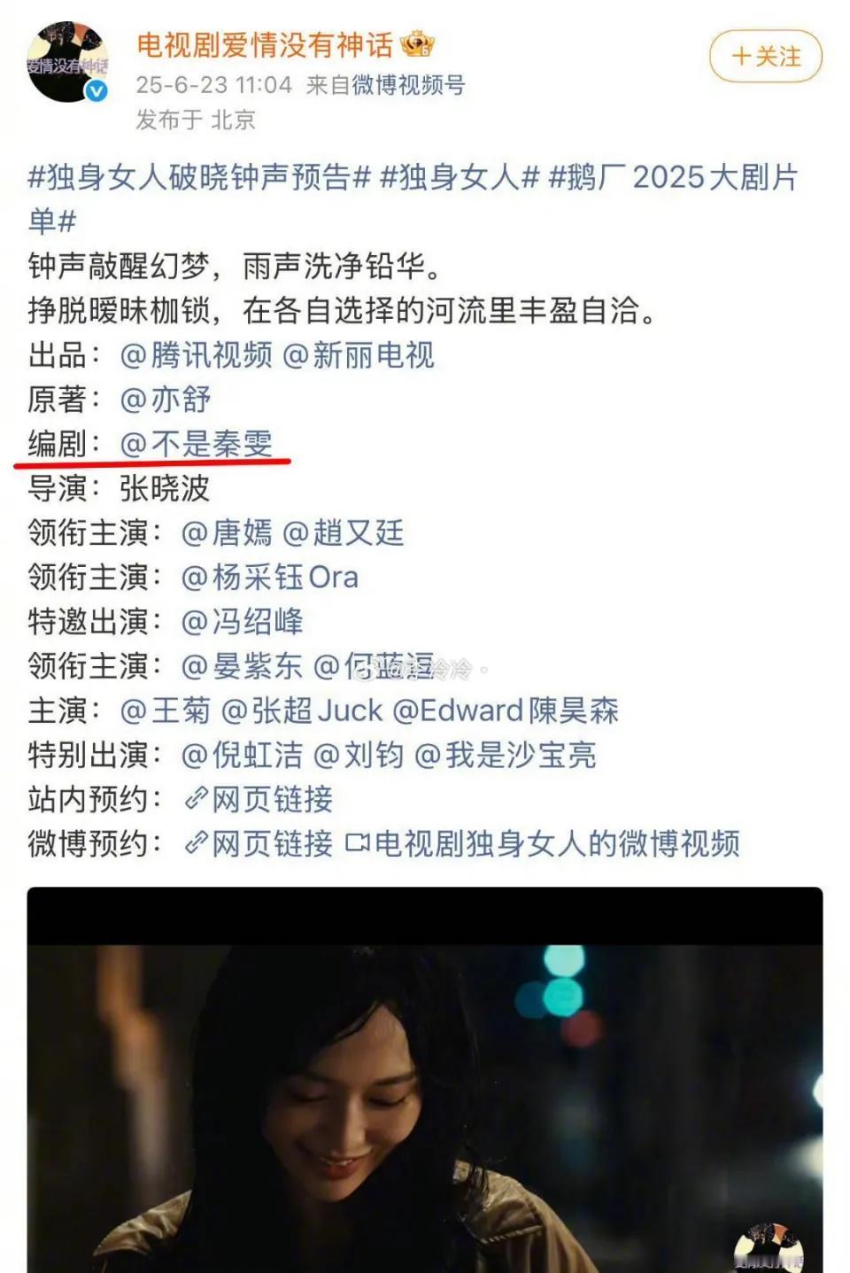 央视撤档唐嫣新剧,疑因编剧秦雯争议。 开播前4天《爱情没有神话》突然从节目单中被撤下,同步排播计划也搁置。央视八套的黄金档由《四喜》接档,剧粉直接原地“心碎成渣”。 《爱情没有神话》由唐嫣、赵又廷主演,改编自亦舒同名小说,编剧是秦雯。撤档原因主要是编剧秦雯陷入舆论风波。编剧古二爆料秦雯剥夺合作者署名权、雇佣枪.手等,其曝光的录音中,秦雯还自述“袭.警被捞”,虽警方通.报当时已接受批评教育,却已触碰公众对从业者品行的底线;加上《流金岁月》当时的争议,让这部唐嫣、赵又廷主演的剧彻底“搁浅”。 要知道这部剧对唐嫣的意义不小,是她凭《繁花》圈粉后的首部女主剧,结果被编剧拖累…… 唐嫣也是实惨,她为这部剧付出诸多,将其视为转型重头戏和“冲奖之作”。早早预留档期深耕角色,结果作品因他人过错而搁置,还曾被王家卫和秦雯在背后吐槽。 不过,这也充分说明,作品的根基不止是剧情和演技,主创的德行更是不可逾越的底线。一次撤档是对行业乱象的警示,也清楚地说明,德不配位,再好的盘子也端不稳。目前剧方还没有官宣后续,但粉丝心态早已放平,好剧不怕晚,唐嫣也把精力放在了新作品的筹备上。